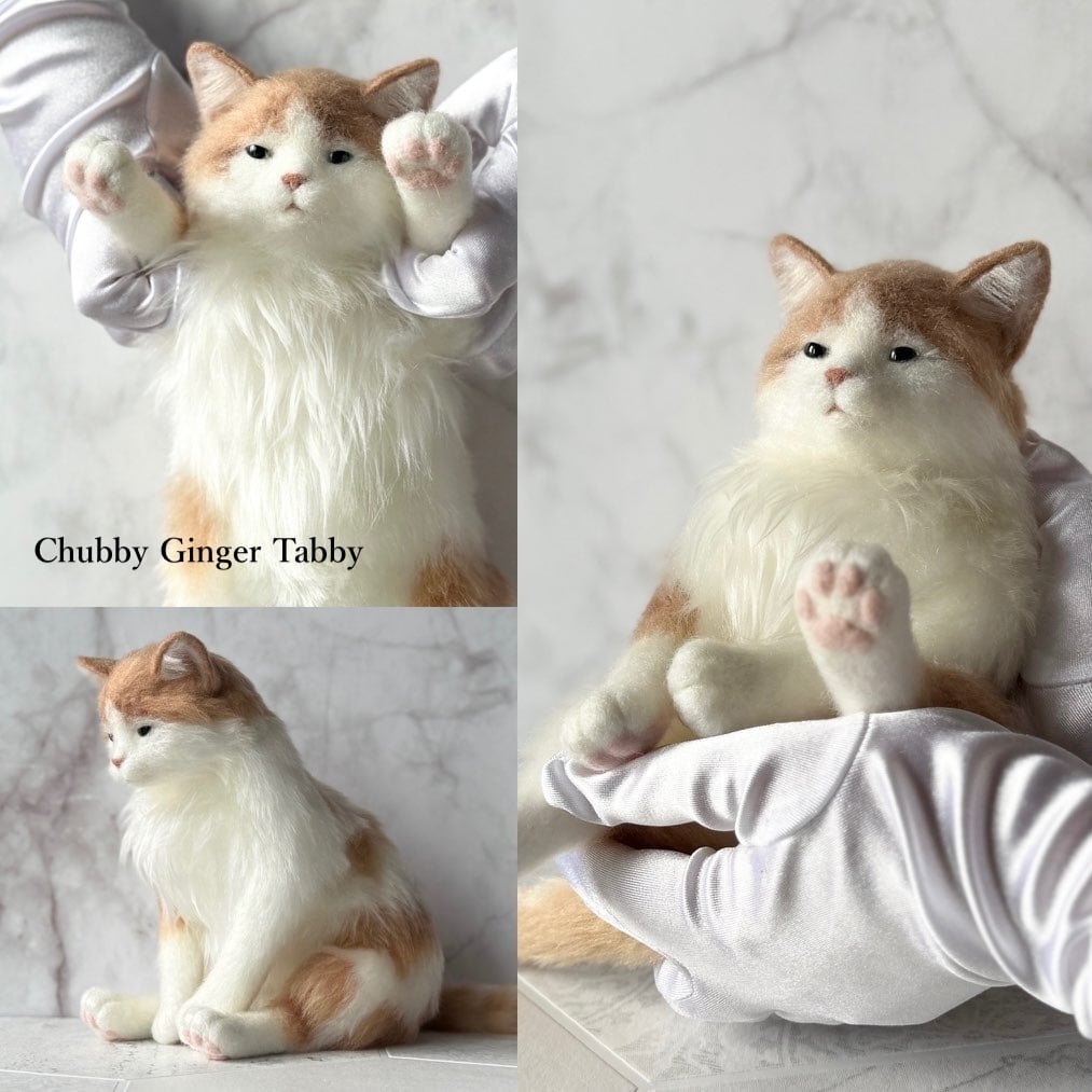◾️作品名|Product Name ぽっちゃりとした茶トラ25N2CG (ご購入後、命名いただきたくお願いします) Chubby Ginger Cat 25N2CG (We invite you to name this piece after adoption.) ◾️概要|Overview ぽっちゃりとした茶トラのアートクラフトぬいぐるみ。 色味の異なる3種のベージュのファーを縫い合わせ、背中と尻尾のタビーを表現しています。 大きなお尻がチャームポイント。 ふくよかなボディーとどっしりとした安定感で心身ともに落ち着いた佇まい。 金属製の骨格とガラスペレットの錘を内蔵することで、しっかりとした重量感と“くったり感”を両立。 通常の作品よりも背中が広いため、内側にトラプントというキルティングの技法を応用して、背中の丸いフォルムと維持しています。 自由なポージングが可能な、柔らかくも彫刻的な一体です。 An art-craft plush inspired by a chubby ginger cat. Three shades of hand-dyed beige fur are pieced together to create the tabby patterns on the back and tail. Its most charming feature is its adorably large backside. The full body and grounded weight give it a calm and reassuring presence. Its internal structure combines a metal skeleton with glass pellet weights, achieving both a satisfying heft and a relaxed, pliable feel. Because the back is broader than on most pieces, a quilting technique inspired by trapunto is applied from within to maintain its rounded form. A soft yet sculptural piece, it allows for a wide range of natural poses. ◾️特徴|Features ・ぽっちゃりとしたフィルム ・大きくキュートなお尻 ・安定感のあるボディーと表情 ・濃いグリーン系のアクリルアイ、ピンクのニードルフェルト肉球 ・柔軟に可動するステンレス&タングステンの骨格構造 ・流動性のあるガラスペレットを内蔵 ・トラプント技法の応用により背中のフィルムを維持 ・重量感と柔軟性により、自然で多様なポージングが可能 - Chubby, rounded form - Large and charming rear - Stable body design and serene facial expression - Deep-green acrylic eyes and pink needle-felt paw pads - Flexible internal skeleton made of stainless steel and tungsten - Filled with fluid glass pellets - Rounded back maintained with a trapunto-inspired technique - Natural and varied posing made possible by the piece’s balance of weight and pliability ◾️価格について|About the Price 本作品は、厳選された素材と独自構造によって制作された一点物のアートクラフトぬいぐるみです。 金属製の骨格や染色したエコファーなど、構造・素材・工程すべてにこだわり、作品の完成度・技術・時間に見合ったものとして価格を設定しております。 This piece is a one-of-a-kind art craft plush, crafted with meticulous attention to its materials and internal construction. The pricing reflects the complexity of its design, including a metal skeleton, hand-dyed faux fur, and detailed handcrafted techniques throughout. ◾️使用ファー|Fur Details ・直毛/短毛/赤みを帯びたベージュ(手染め) ・直毛/短毛/ベージュ(手染め) ・直毛/短毛/薄いベージュ(手染め) ・直毛/長毛/ホワイト ・カーリー/長毛/ホワイト - Straight / Short pile / Reddish beige (Hand-dyed) - Straight / Short pile / Beige (Hand-dyed) - Straight // Short pile / Light beige (Hand-dyed) - Straight / / Long pile / White - Curly / Long pile / White ◾️サイズ|Size 約 38.5 cm(耳の先から尻尾の先まで) Approximately 38.5 cm (from ear tips to tail) ◾️重さ|Weight 約 353 g Approximately 353 g ◾️素材|Materials ・ファー:アクリル、ポリエステル ・ホネ / 内蔵物:ステンレス、タングステン、木材、布、ガラスペレット、ポリエステル ・目:アクリル ・肉球:ニードルフェルト ・タグ:真鍮 他 - Fur: Acrylic, polyester - Internal structure: Stainless steel, tungsten, wood, fabric, glass pellets, polyester - Eyes: Acrylic - Paw pads: Needle felt - Tag: Brass (Other minor materials may also be used) ◾️外観について|About Appearance ・画像の色味が実物と若干異なる場合があります。 ・ファーの質感には個体差があります。 - The actual color may appear slightly different from the photos. - The texture of the fur may vary from piece to piece. ◾️お取り扱いについて|Handling Notes ・毛先が乱れた場合は櫛や編み棒等で毛をとかしてください。 ・デリケートな作品のため、抱っこ・遊び・添い寝には適しません。 ・特に顔と手足はデリケートなため、粘着クリーナー等は使用しないでください。 ・生地の性質上、繊維が抜けることがあります。取扱いにはご注意ください。 ・洗濯はできません。湿気・水濡れにご注意ください。 ・色落ちの可能性があるため設置場所にご配慮ください。 ・湿度等でファーが寝てきた場合は、優しく温風のドライヤーをかけるとふわっとなります。 ・小さなお子様の手の届かない場所で保管してください。 - If the fur becomes unruly or tangled, gently comb it using a fine-toothed comb or a knitting needle. - This is a delicate work of art and is not suitable for hugging, playing, or sleeping with. - In particular, avoid using adhesive-based cleaners on the delicate face and limbs. - Due to the nature of the fabric, some fiber shedding may occur. Please handle with care. - Do not wash. Protect from humidity and moisture. - Color may fade depending on placement and exposure conditions. - If the fur becomes flattened due to humidity, gently fluff it with warm air from a hair dryer. - Store in a place o