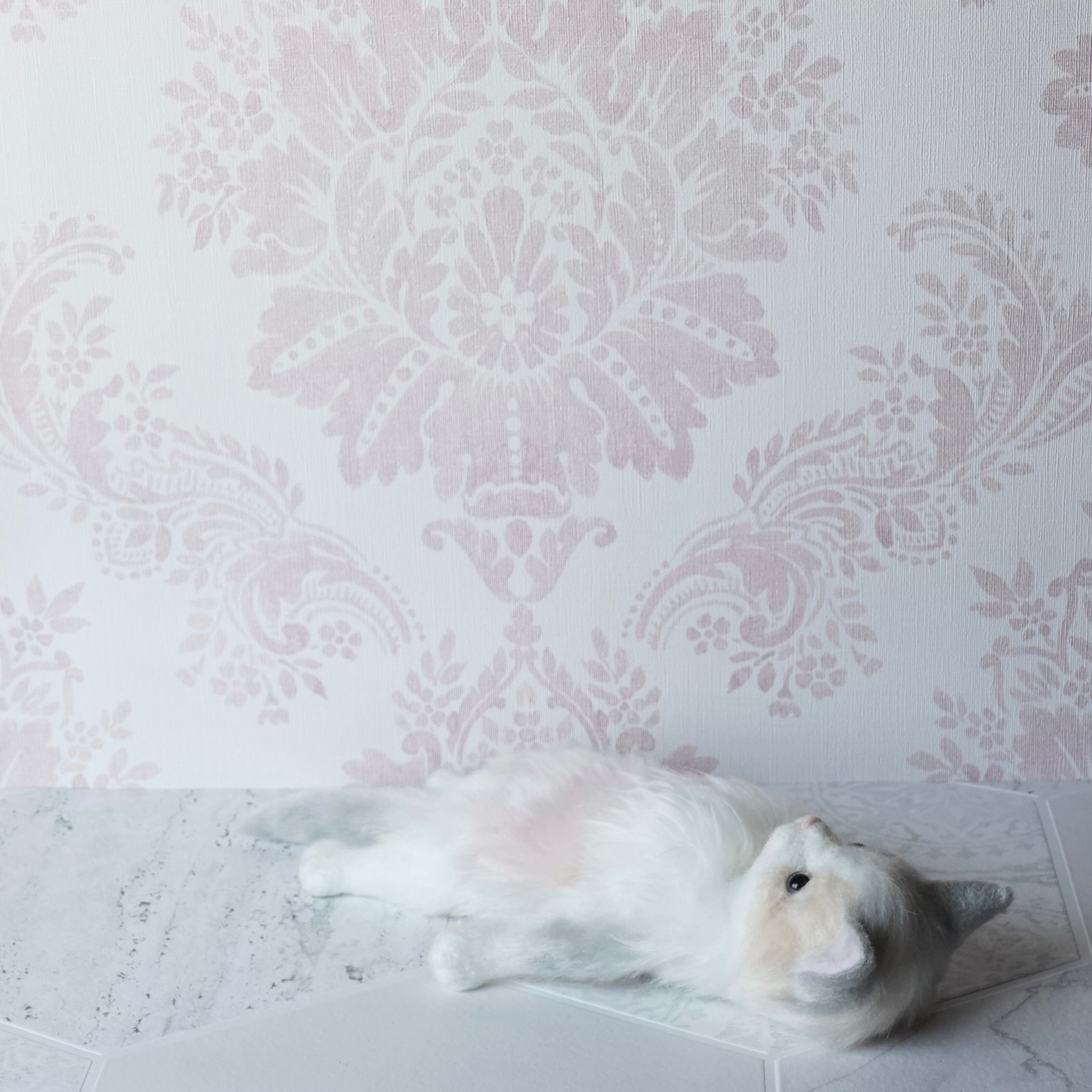 The lining of the fur on the belly is dyed pink, so a pale pink color can be seen behind the white fur.The eye color is brown. The pale color gives it a delicate yet elegant appearance.