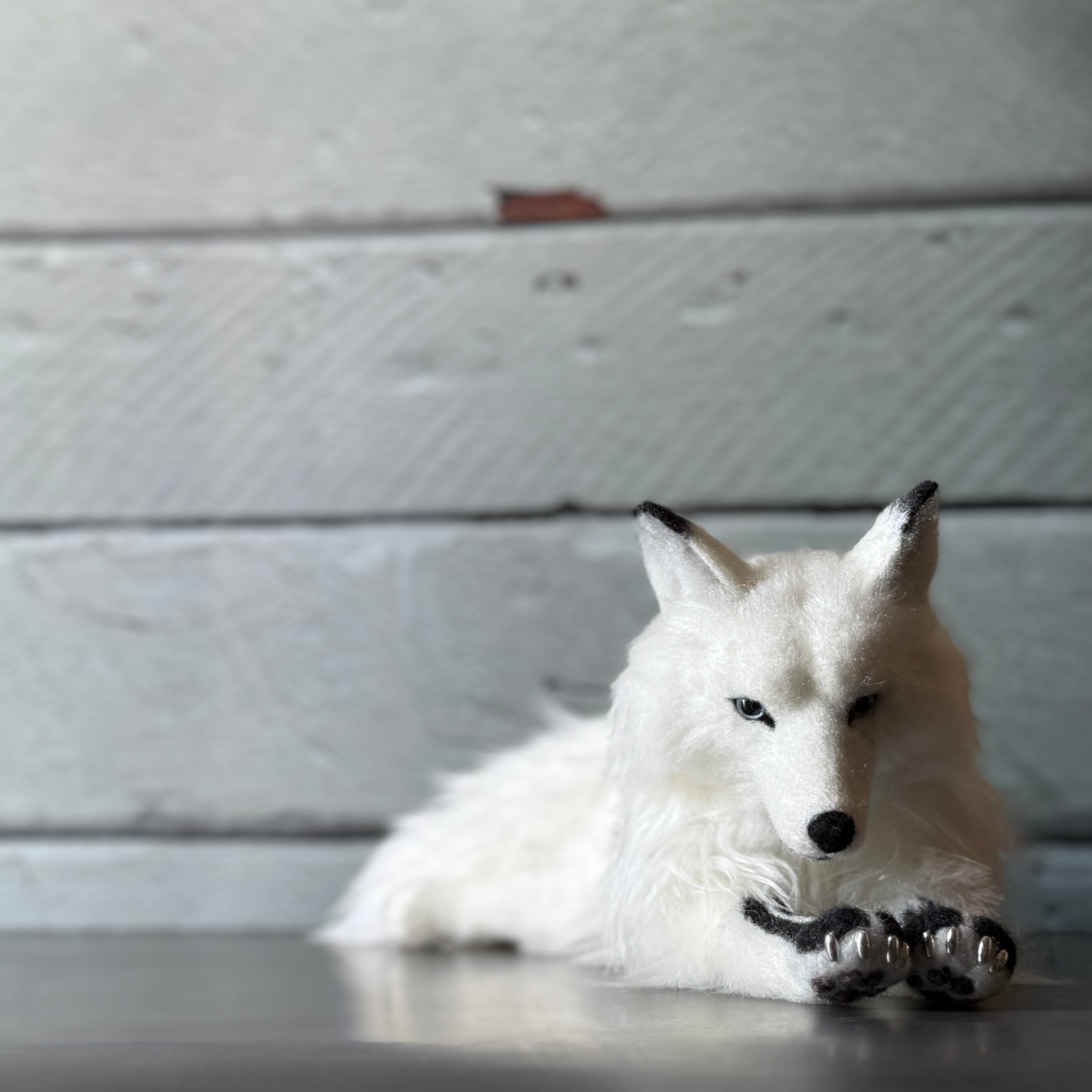 An art-craft plush of a wolf based on the earlier piece, Arctic Wolf 24N5AW.