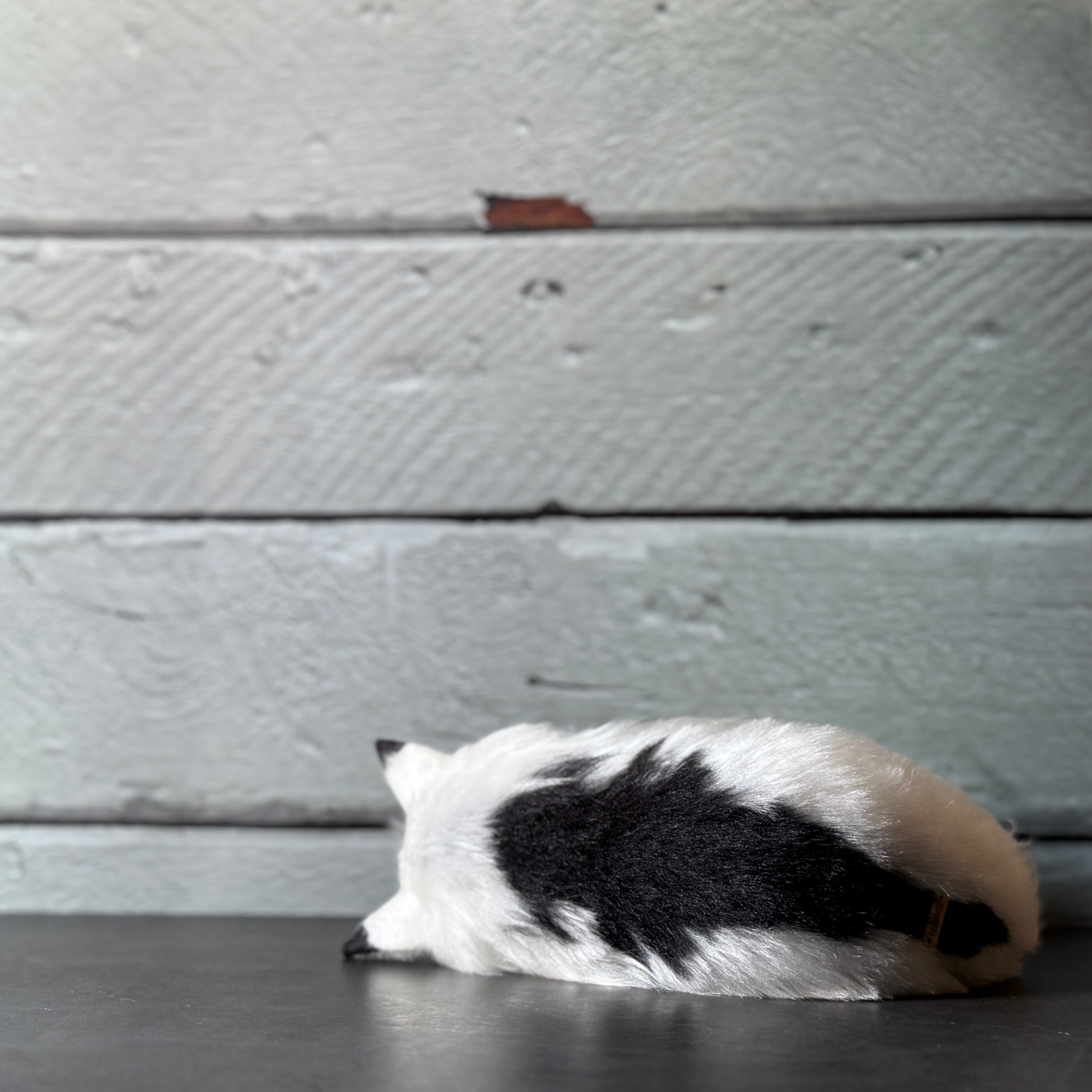 White fur with gray-dyed backing is used to create depth in the transitions between black and white areas.