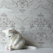 真っ白な毛並みに顔とお腹に見える薄いピンク色が血色を感じさる、キトゥンブルーの瞳が印象的な作品です。