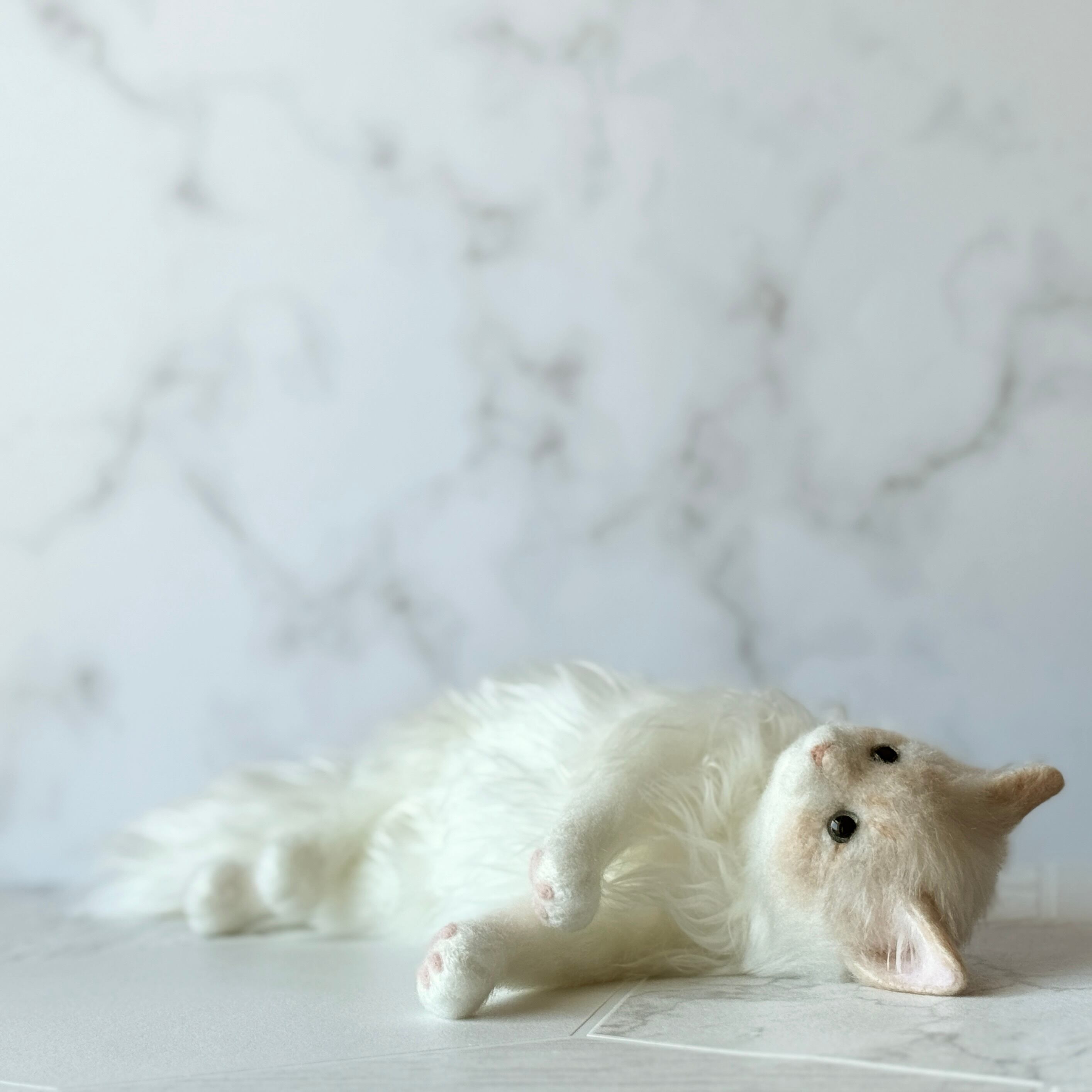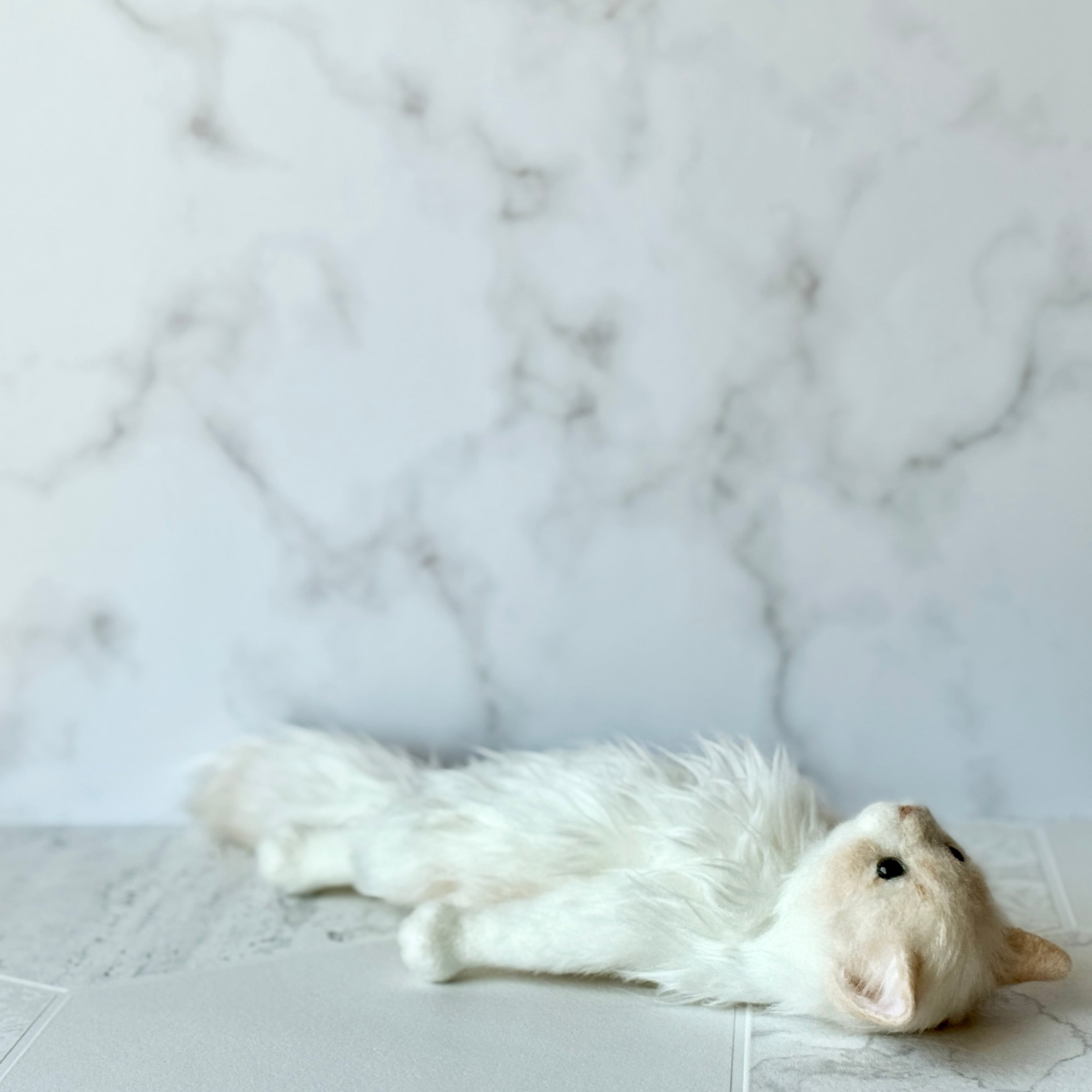 淡い色味とふわっと柔らかな毛並みで猫が持つ優しい存在感を表現しました。