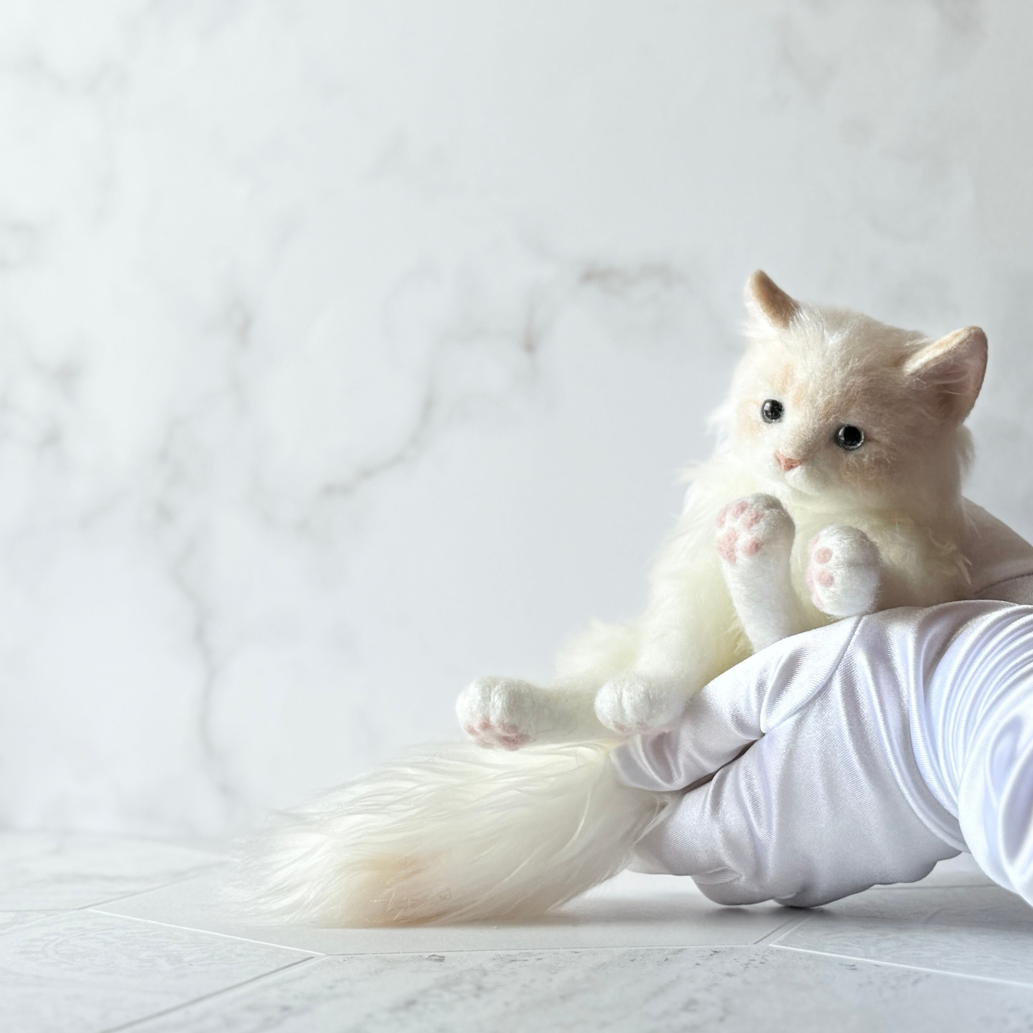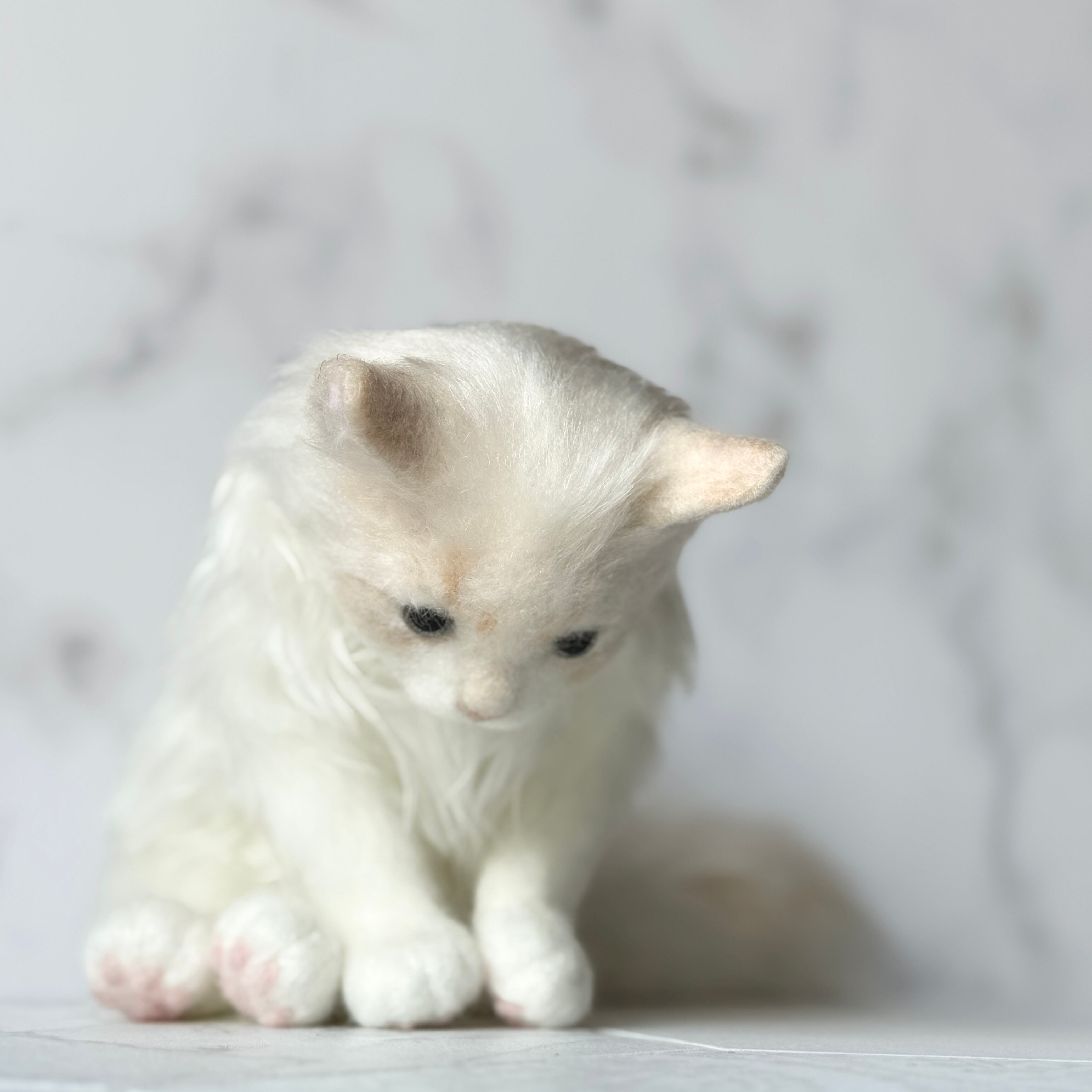 With its pale tones and gently soft fur, this piece expresses the gentle presence that cats naturally exude.