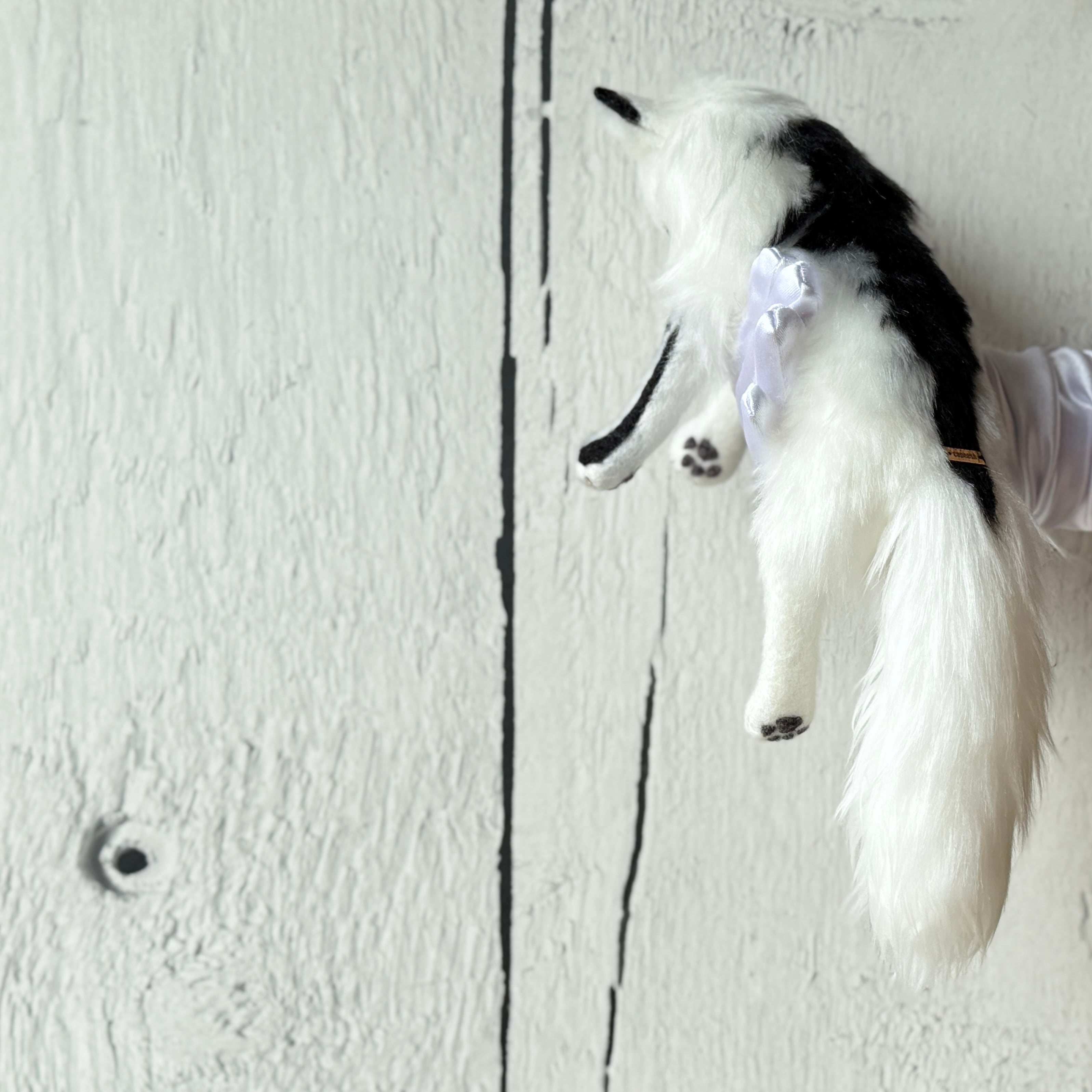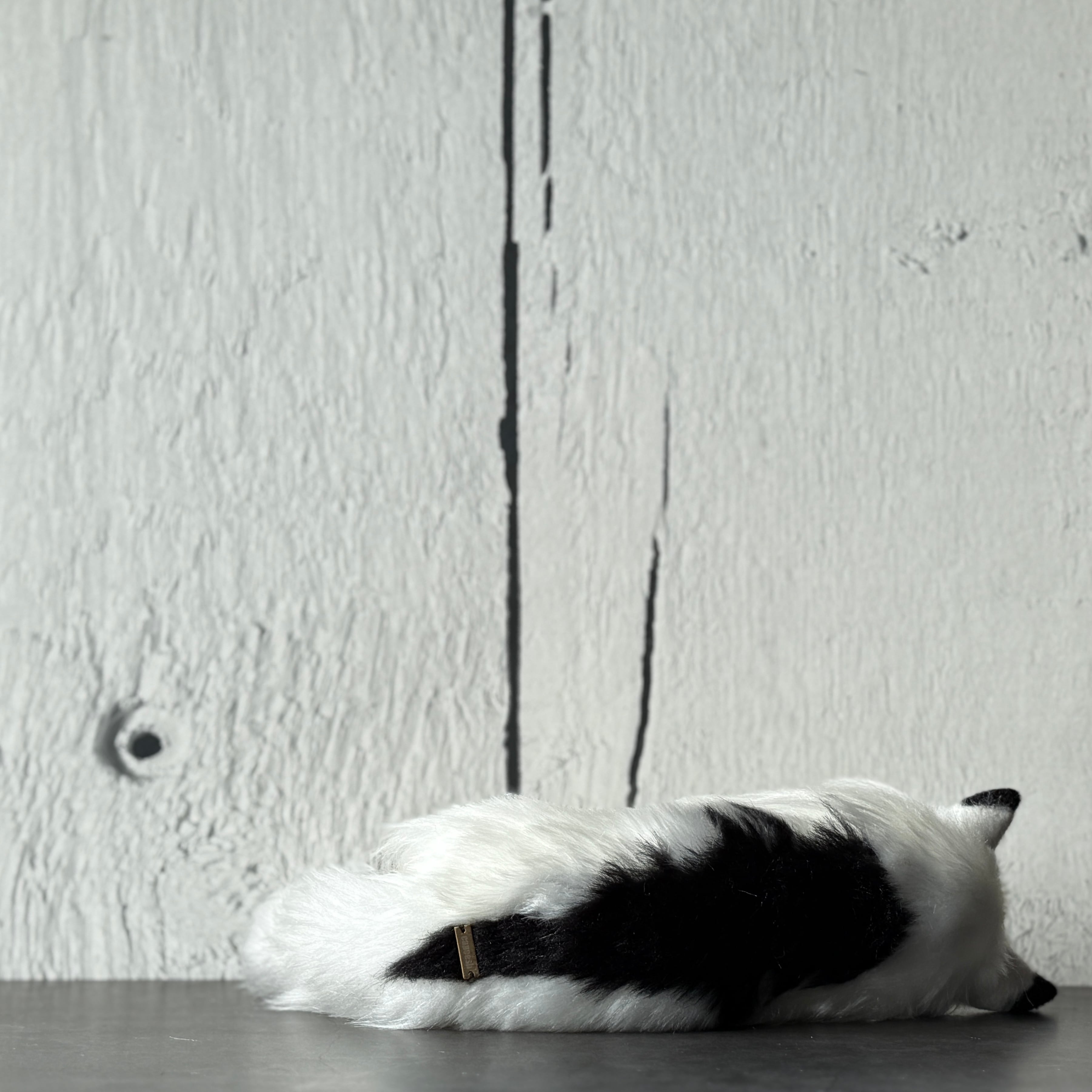 White fur with gray-dyed backing is used to create depth in the transitions between black and white areas.