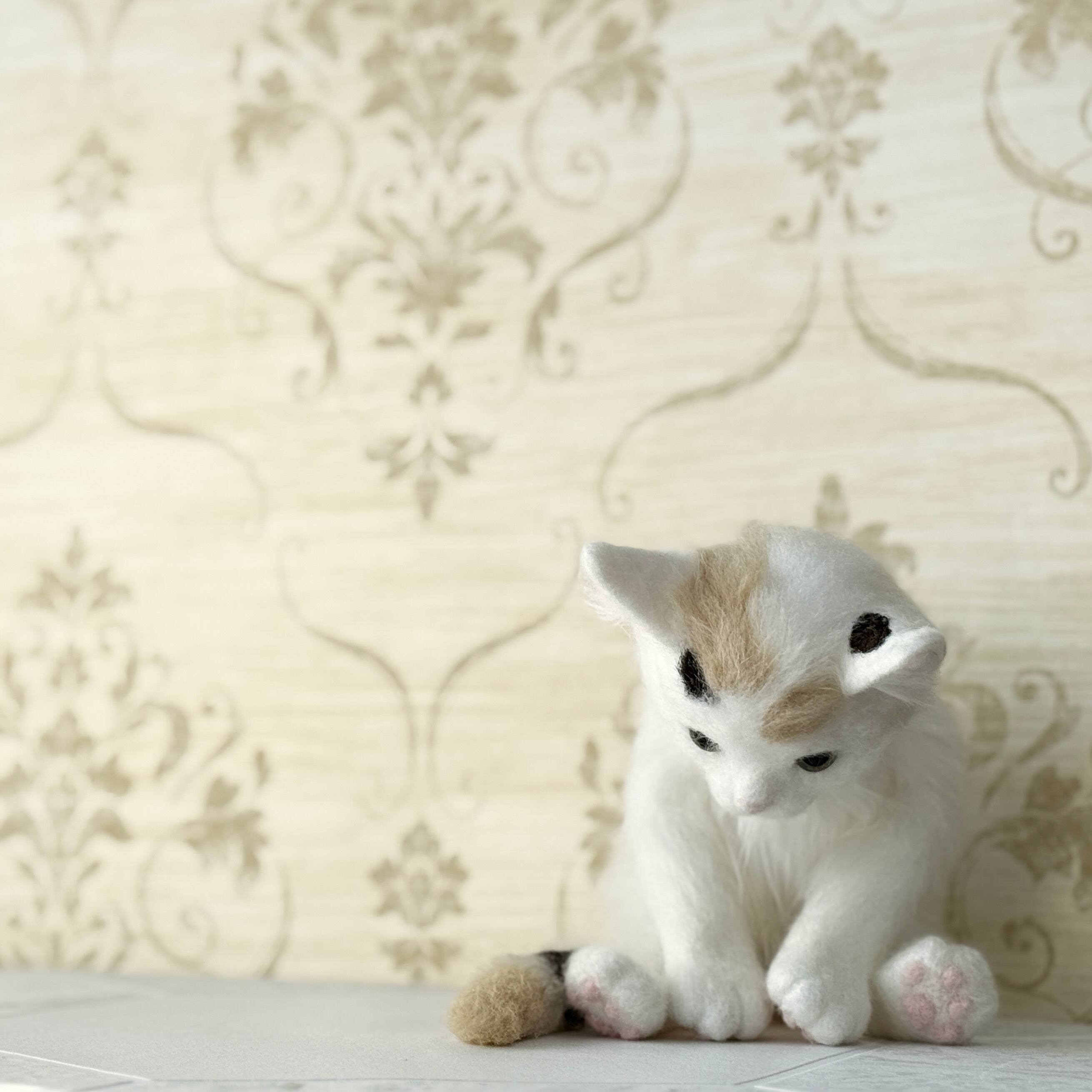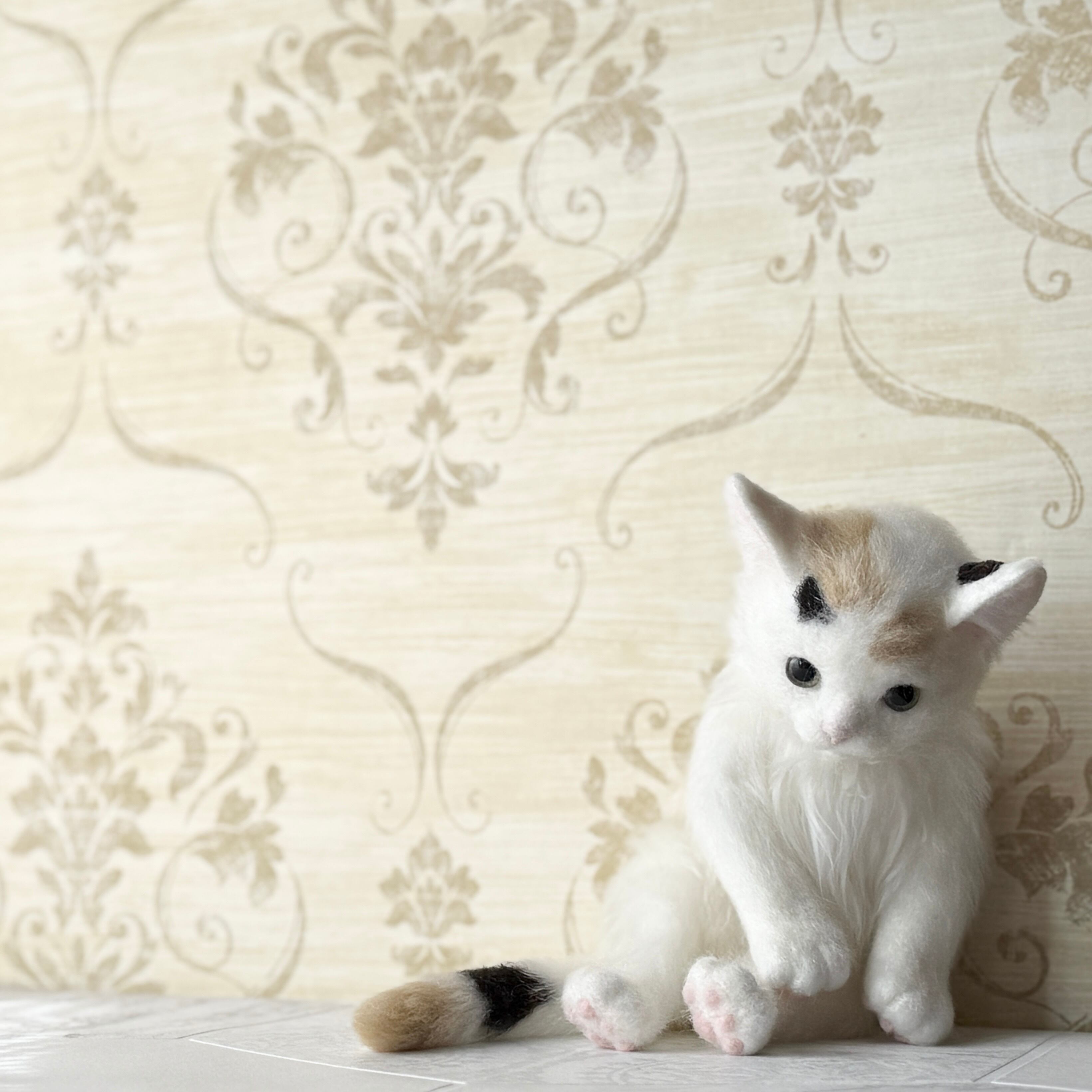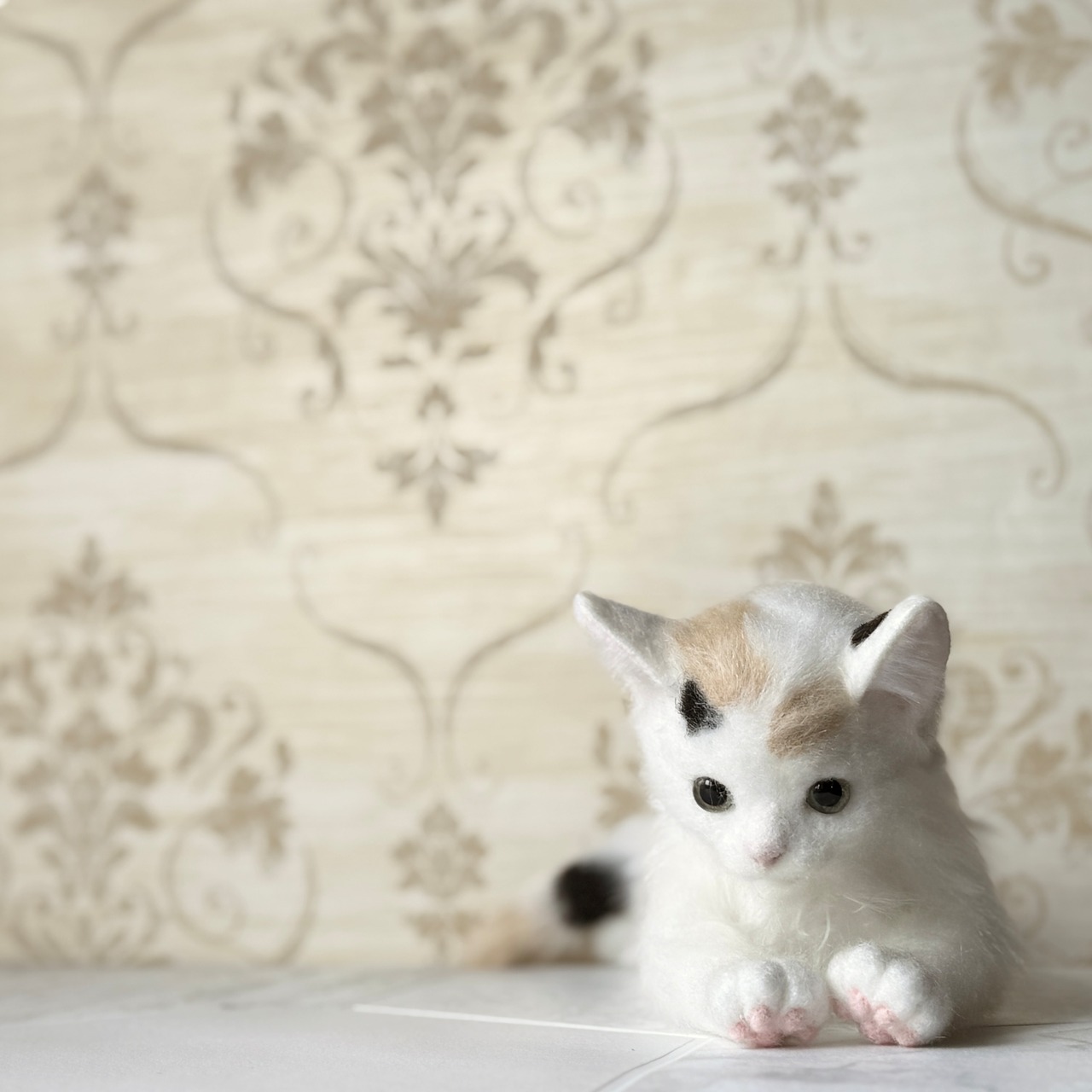模様控えめのほぼ白。広い額と大きめの耳で、好奇心旺盛でわんぱく盛りな印象に仕上げました。