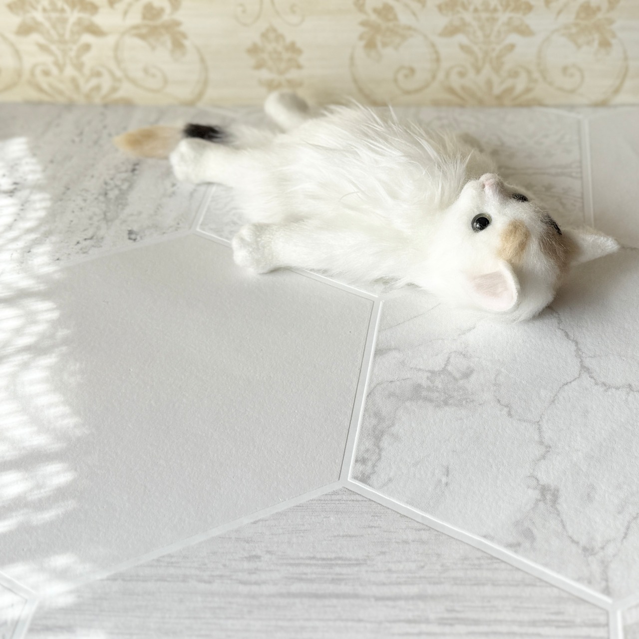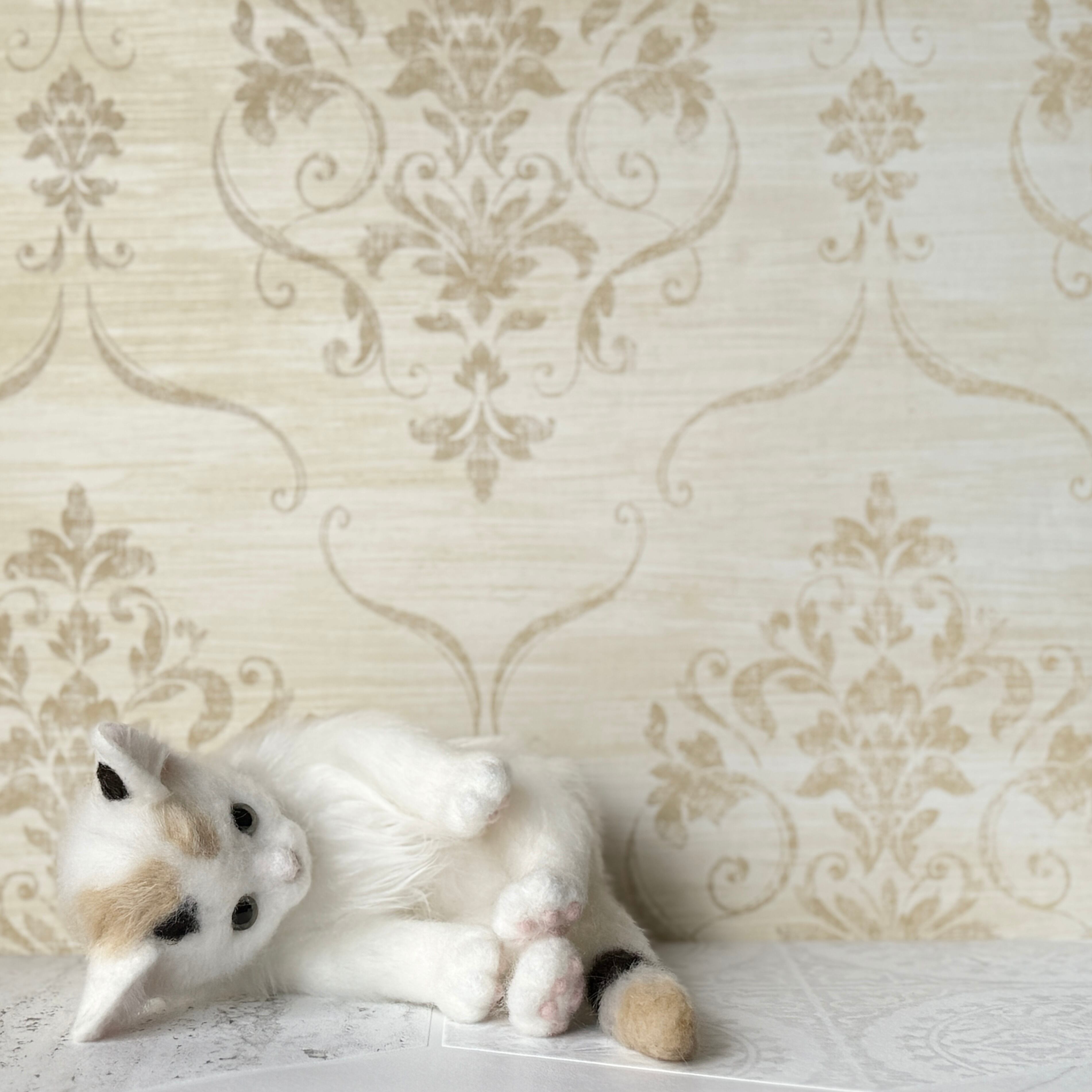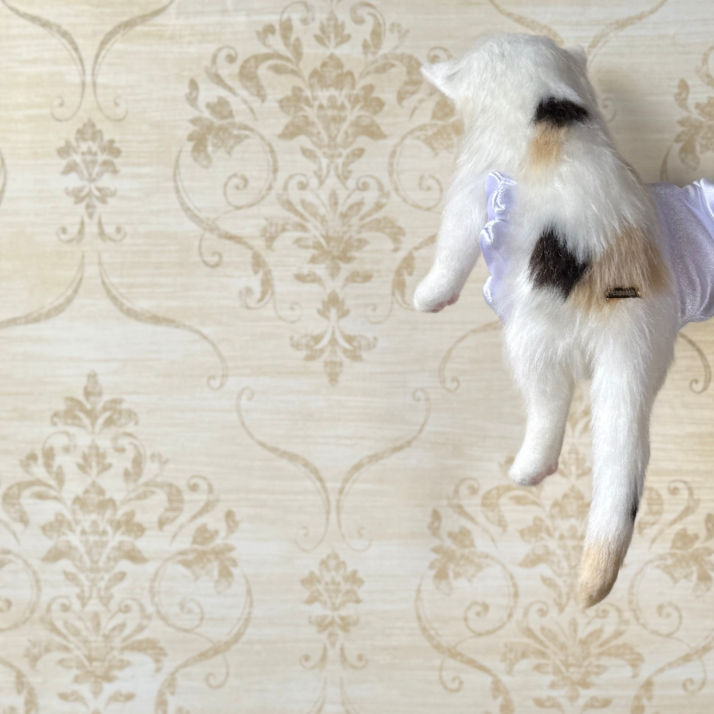 模様控えめのほぼ白。広い額と大きめの耳で、好奇心旺盛でわんぱく盛りな印象に仕上げました。
