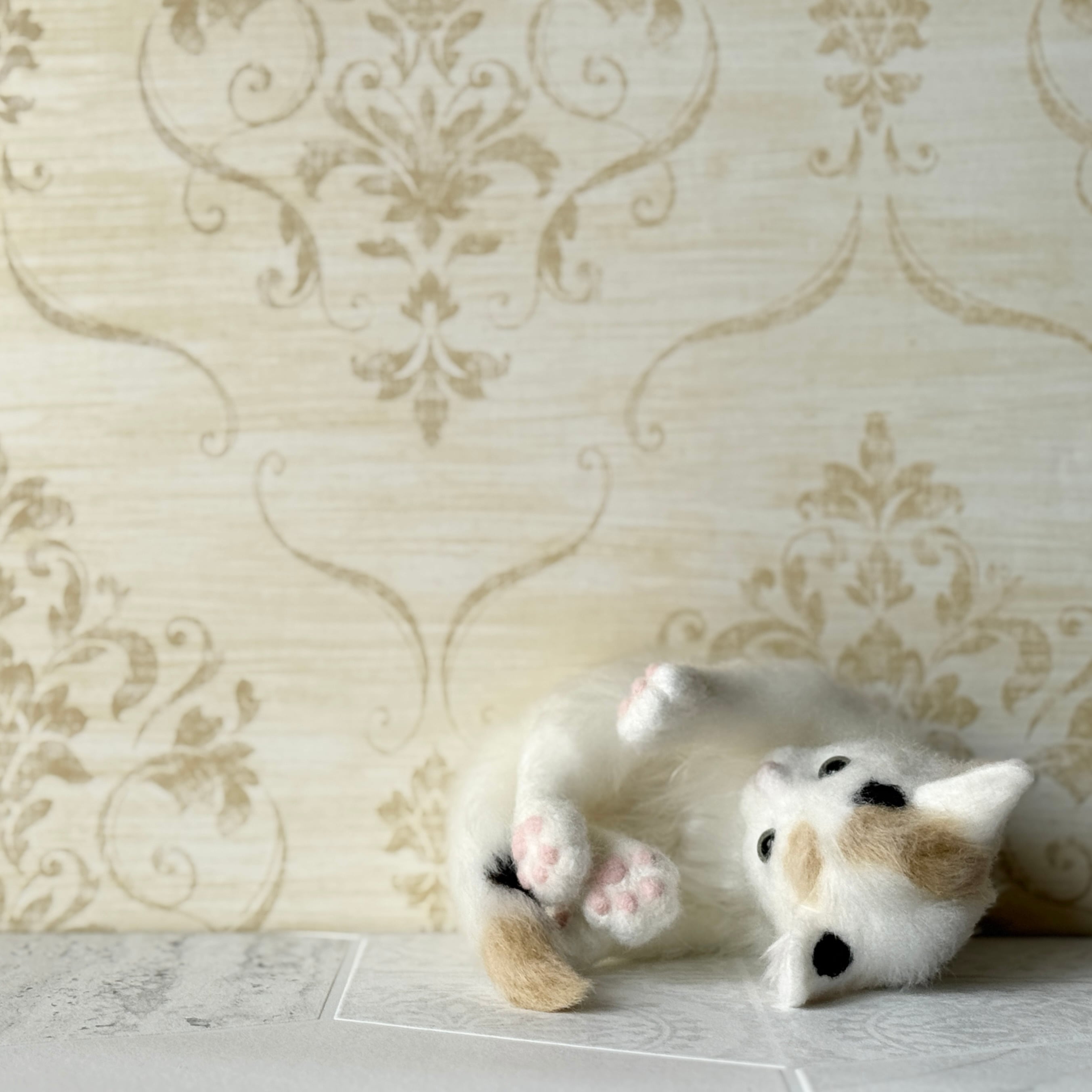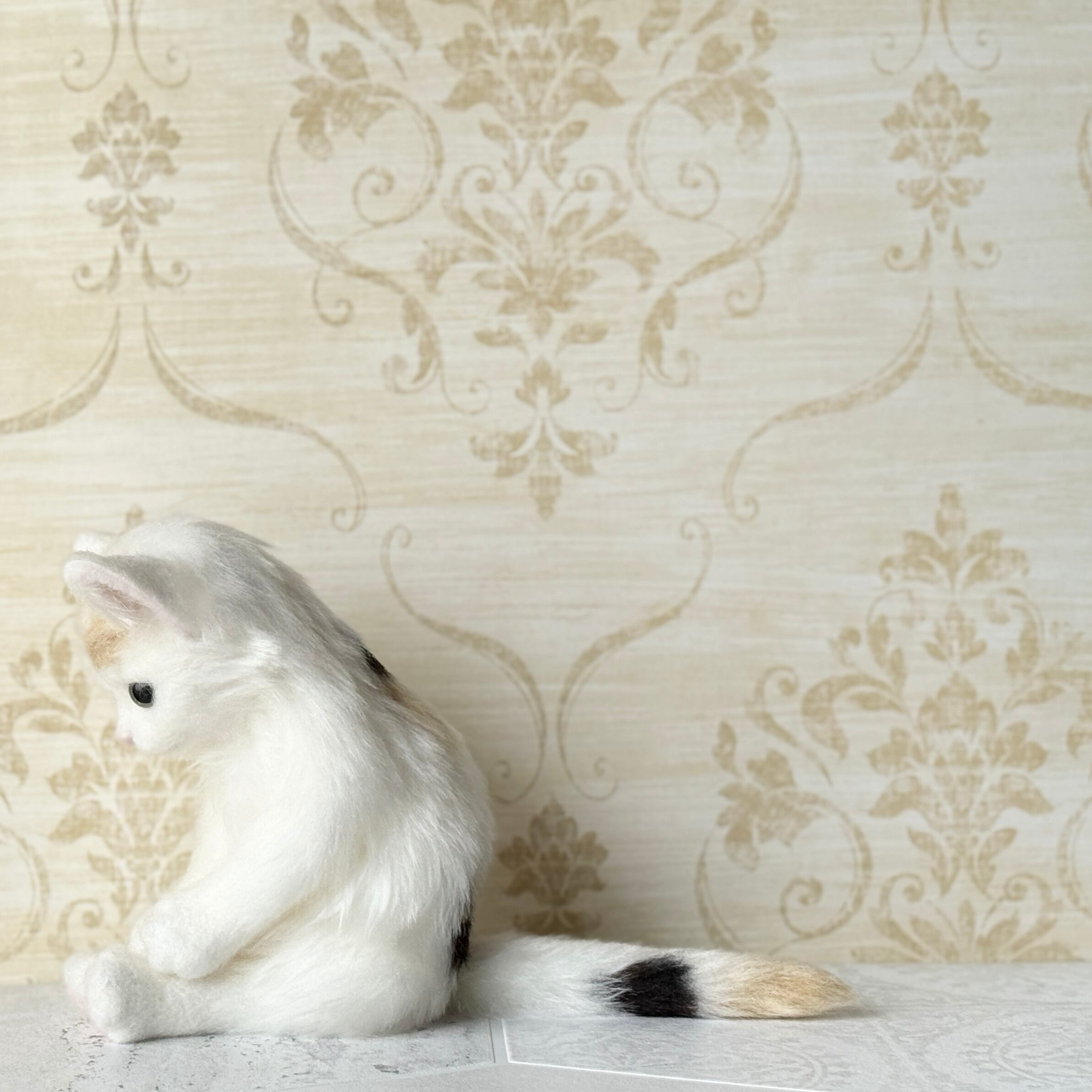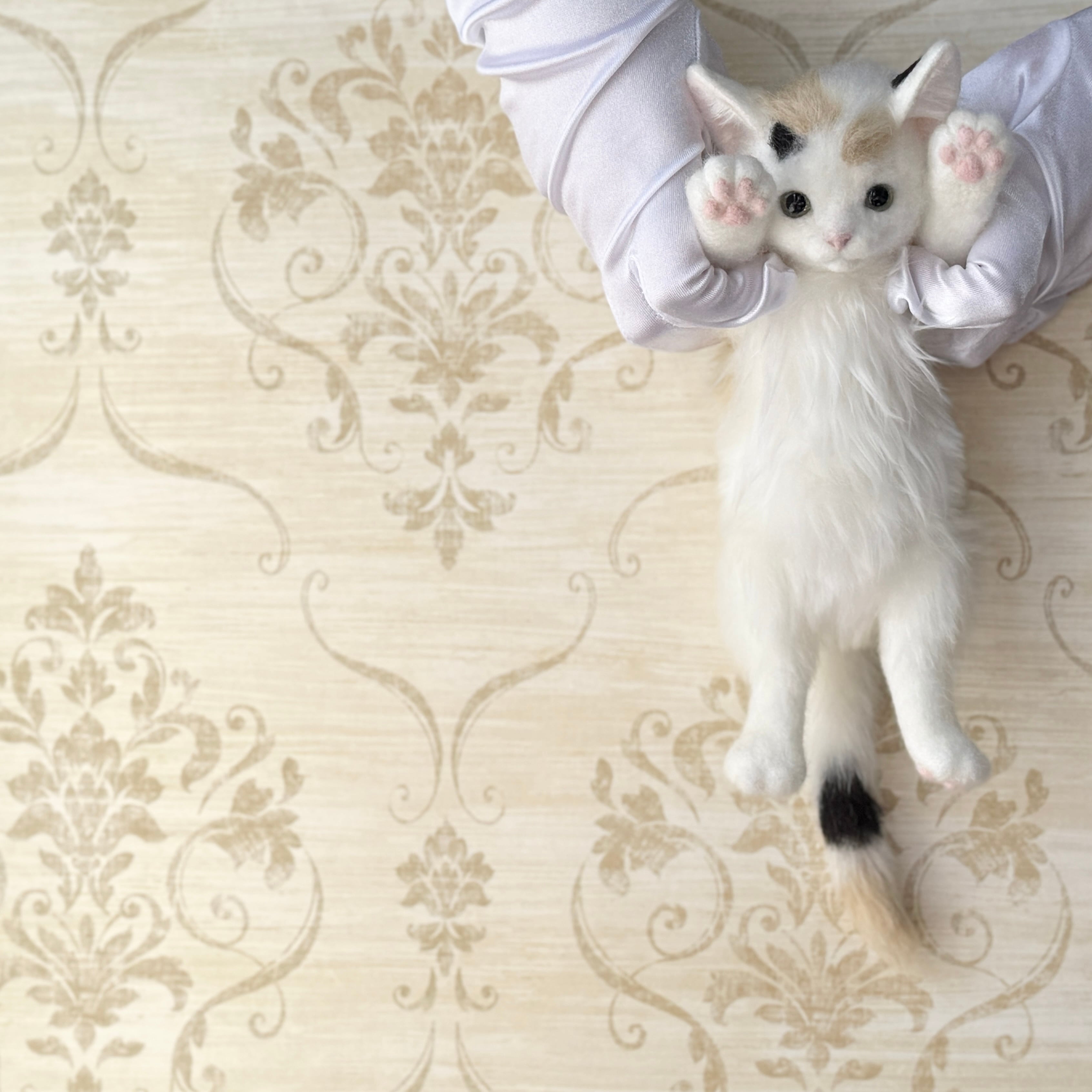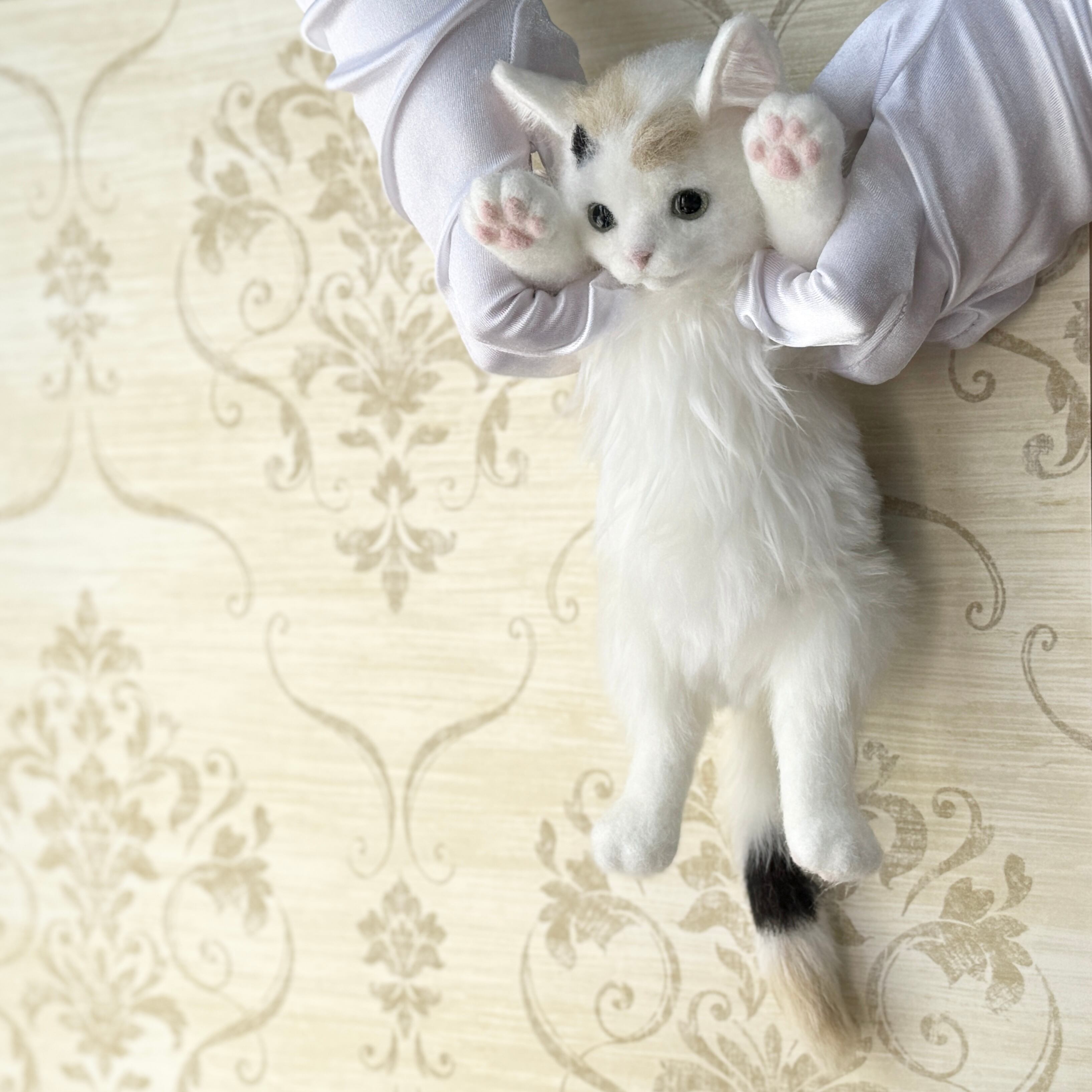 ミケの仔ネコ(和猫)のアートクラフトぬいぐるみ。