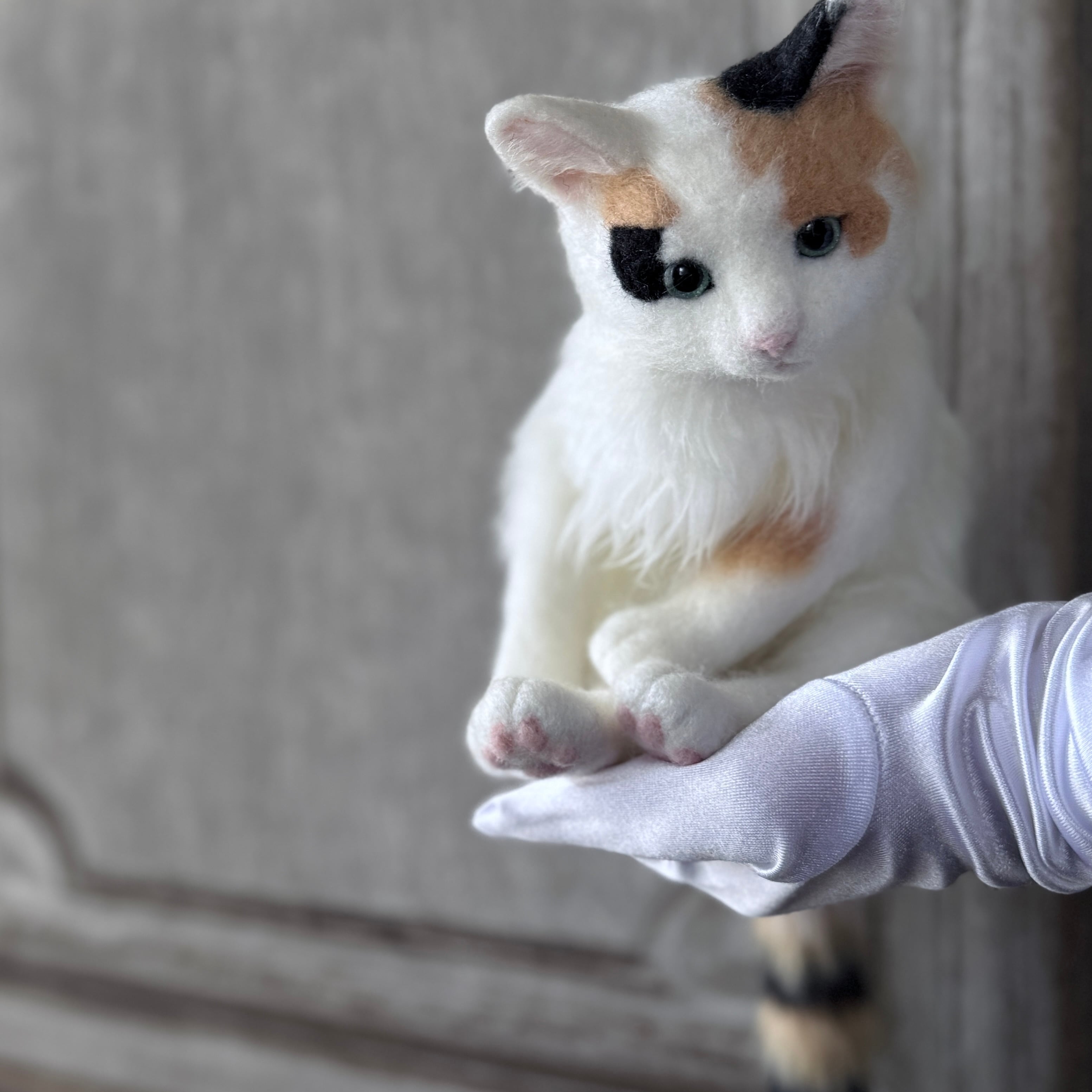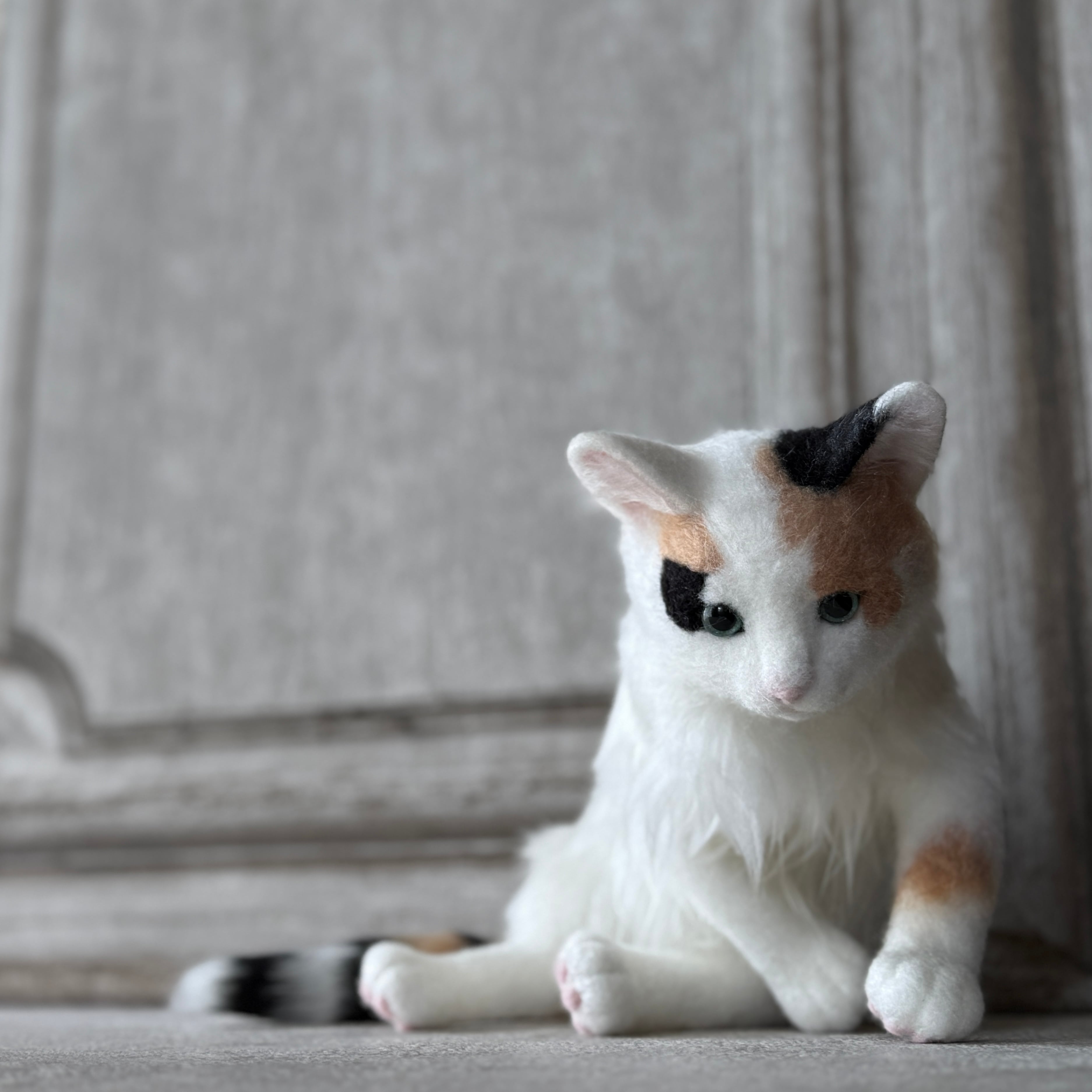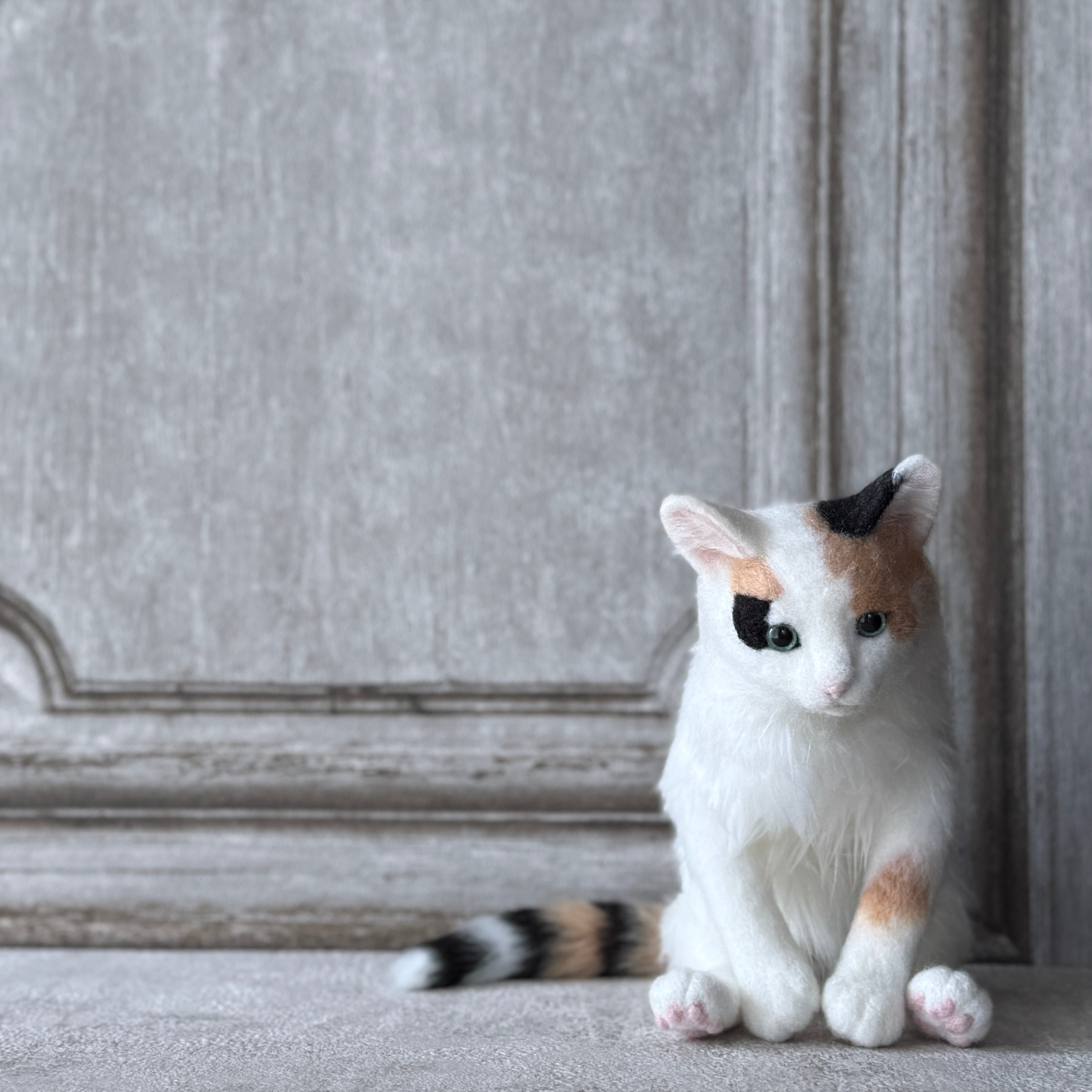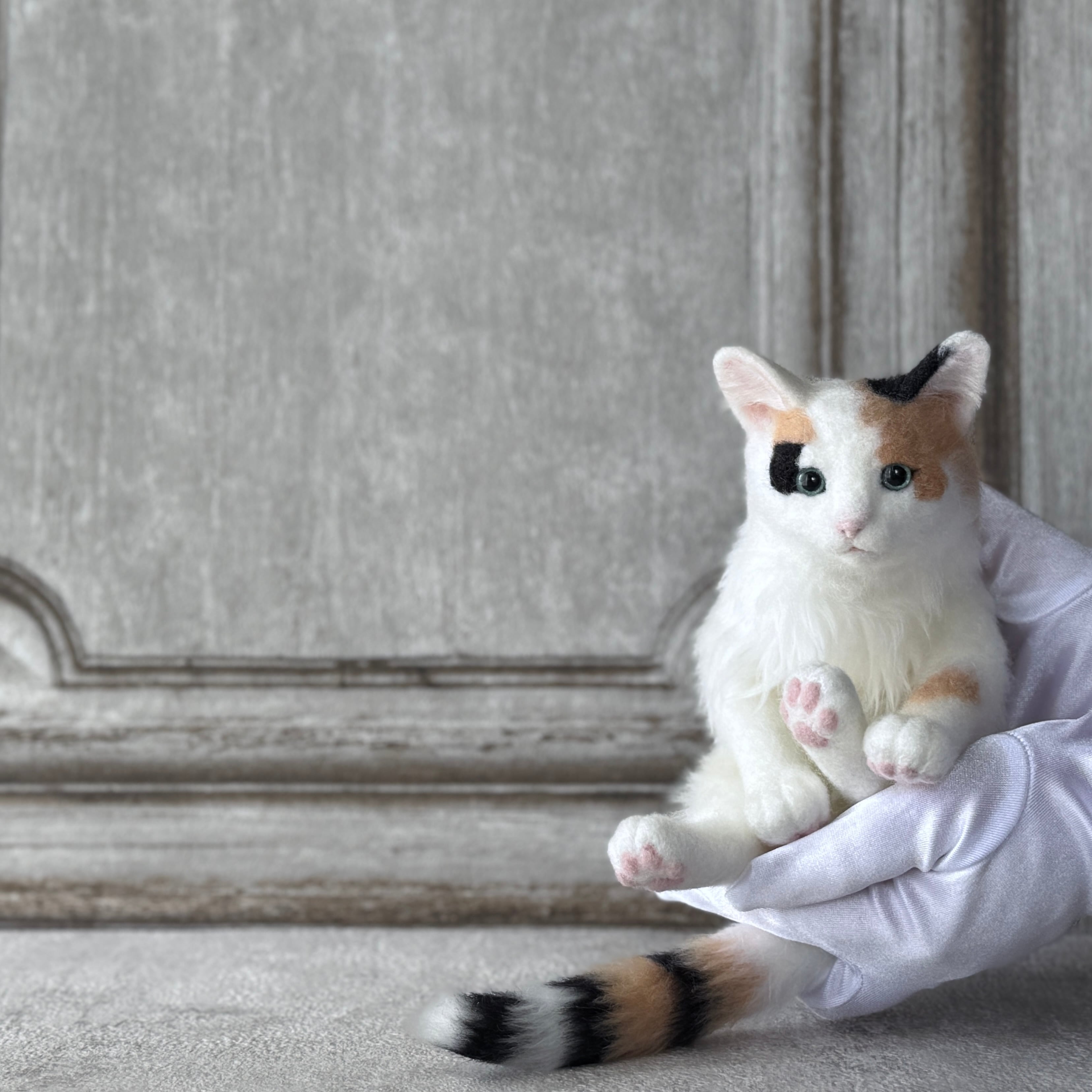 三毛ネコ(和猫)の一点物のアートクラフトぬいぐるみ。