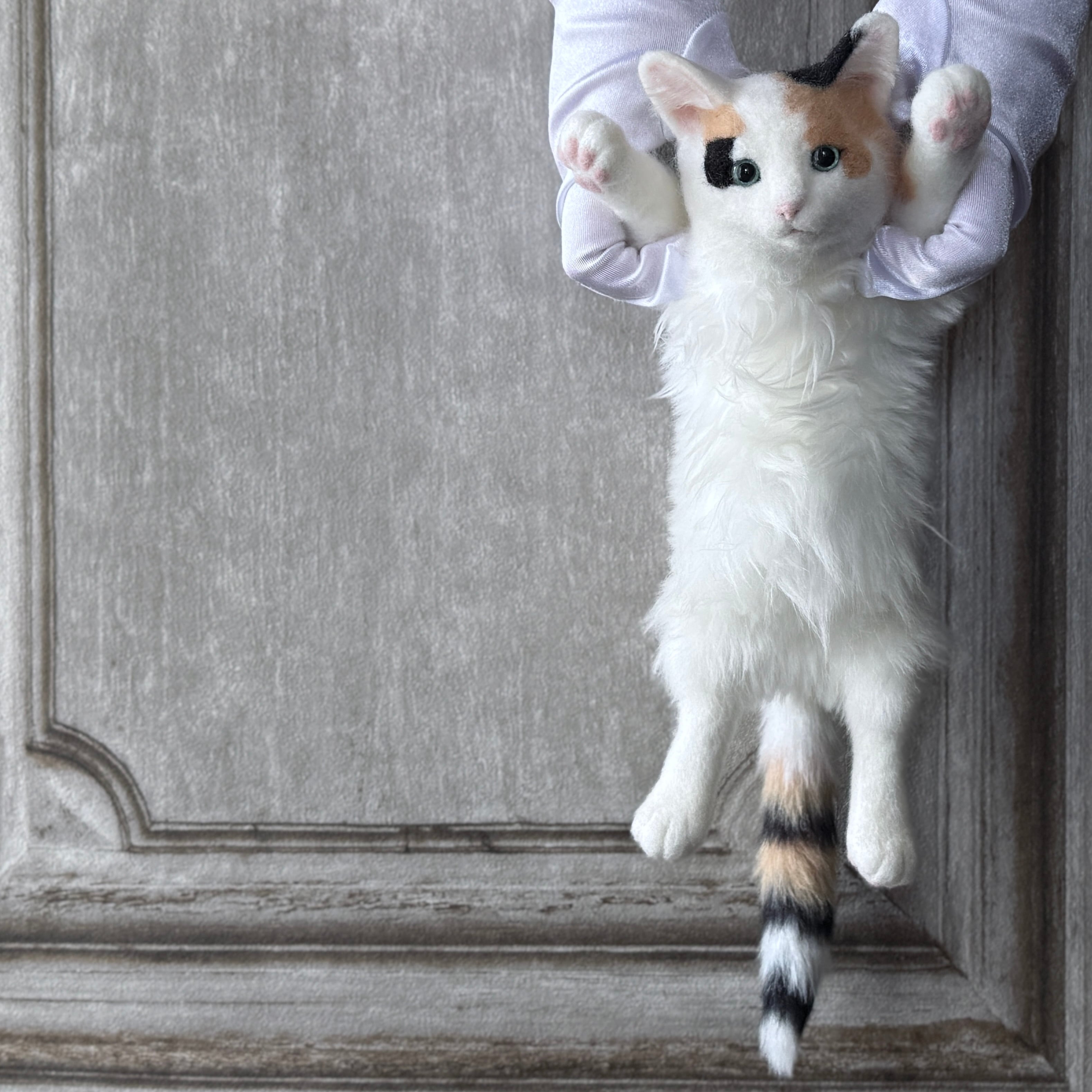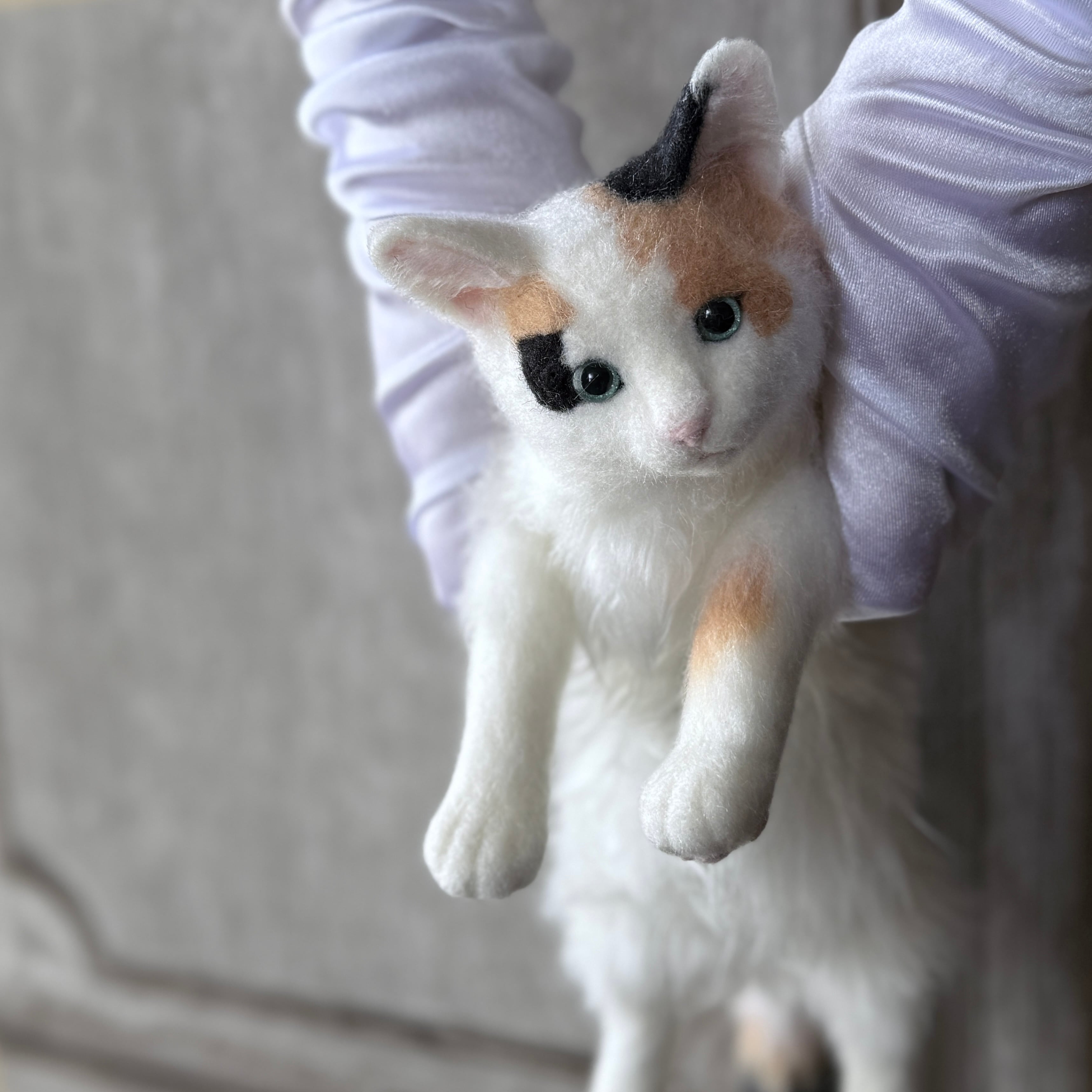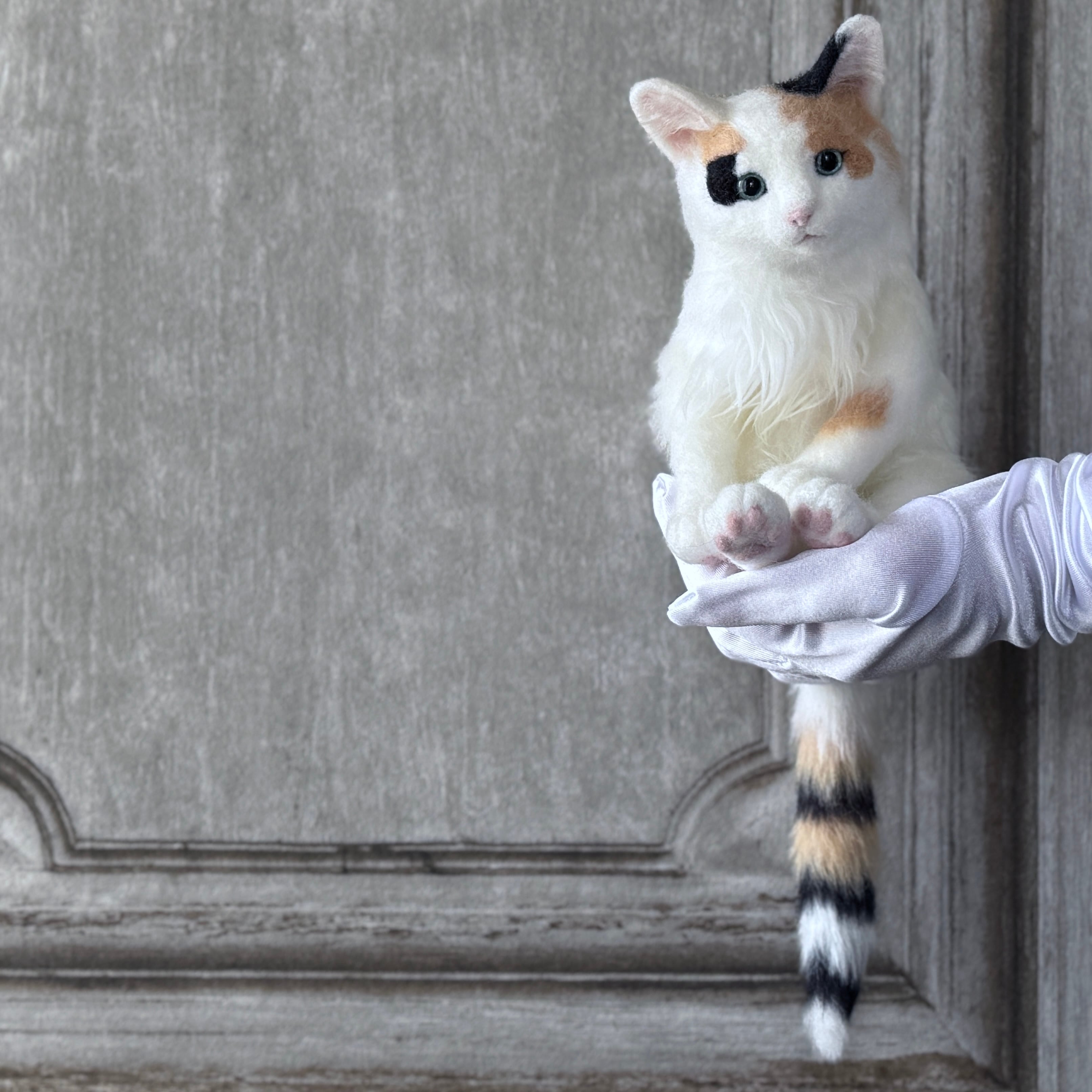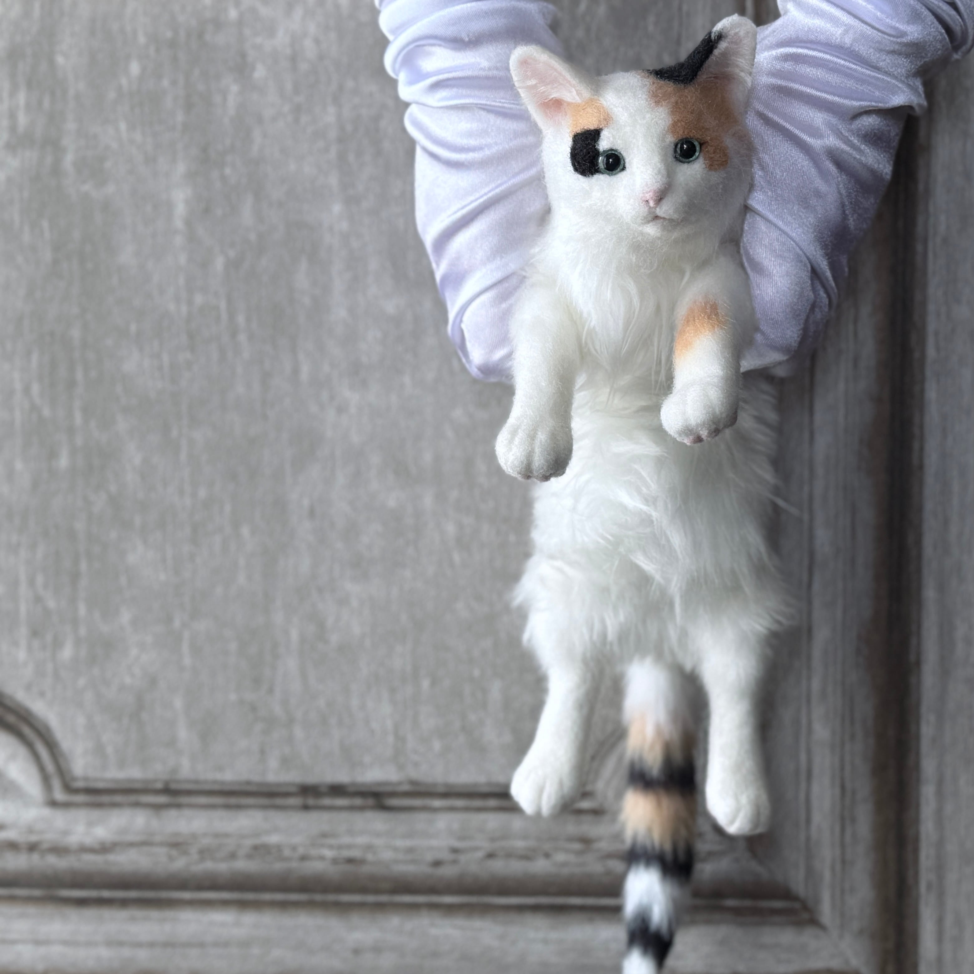 三毛ネコ(和猫)の一点物のアートクラフトぬいぐるみ。