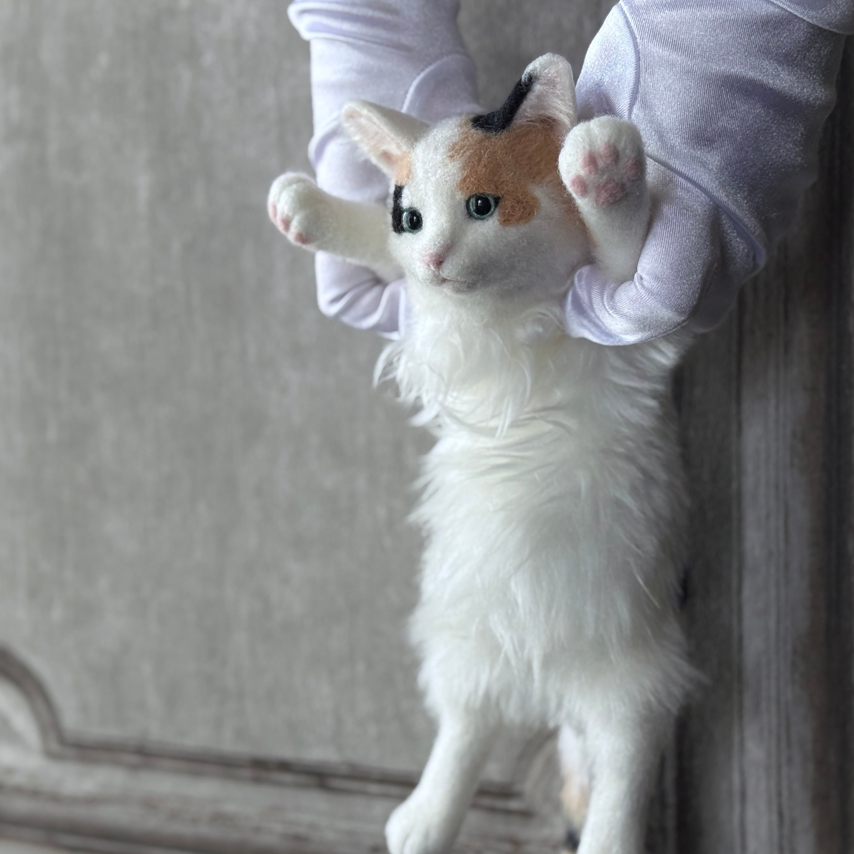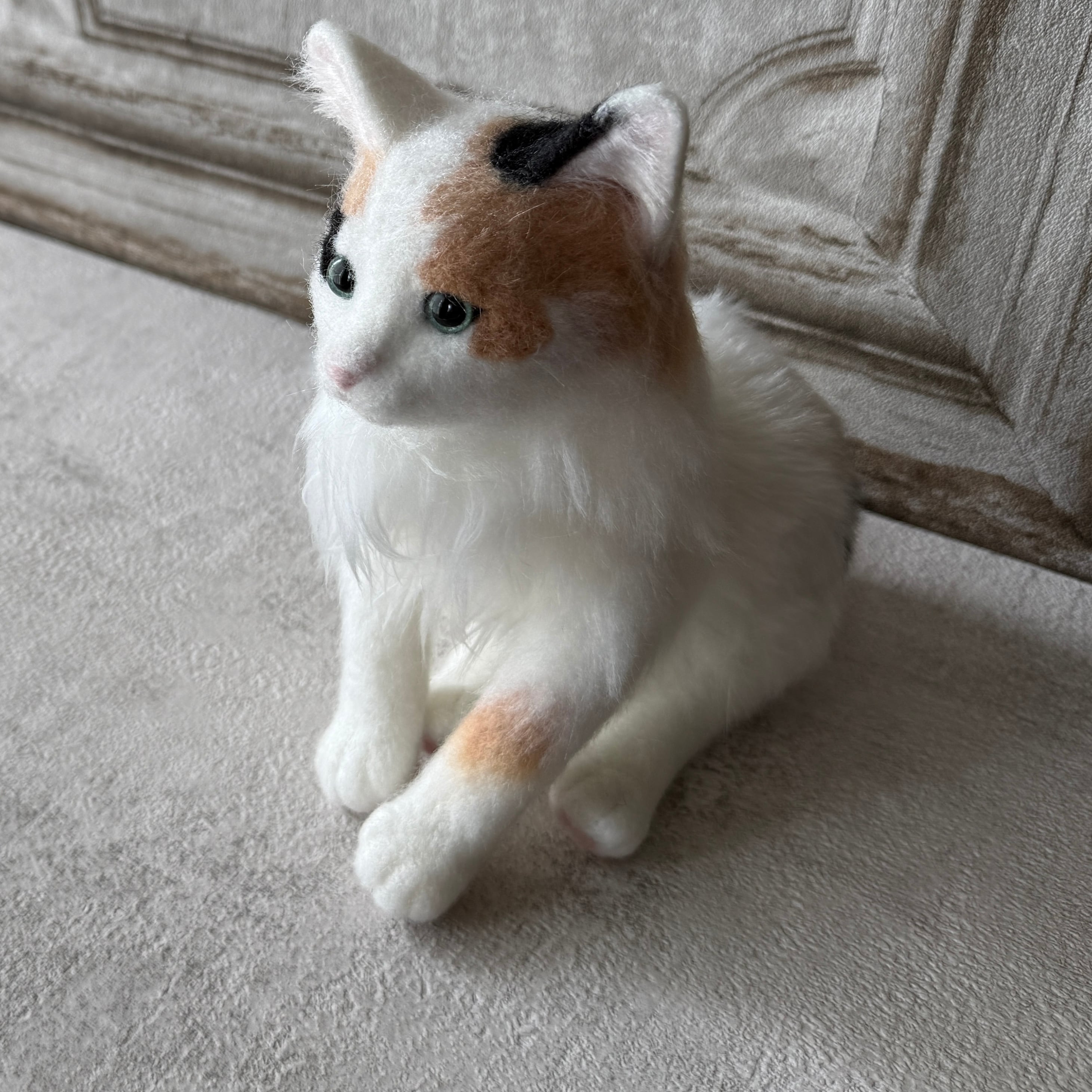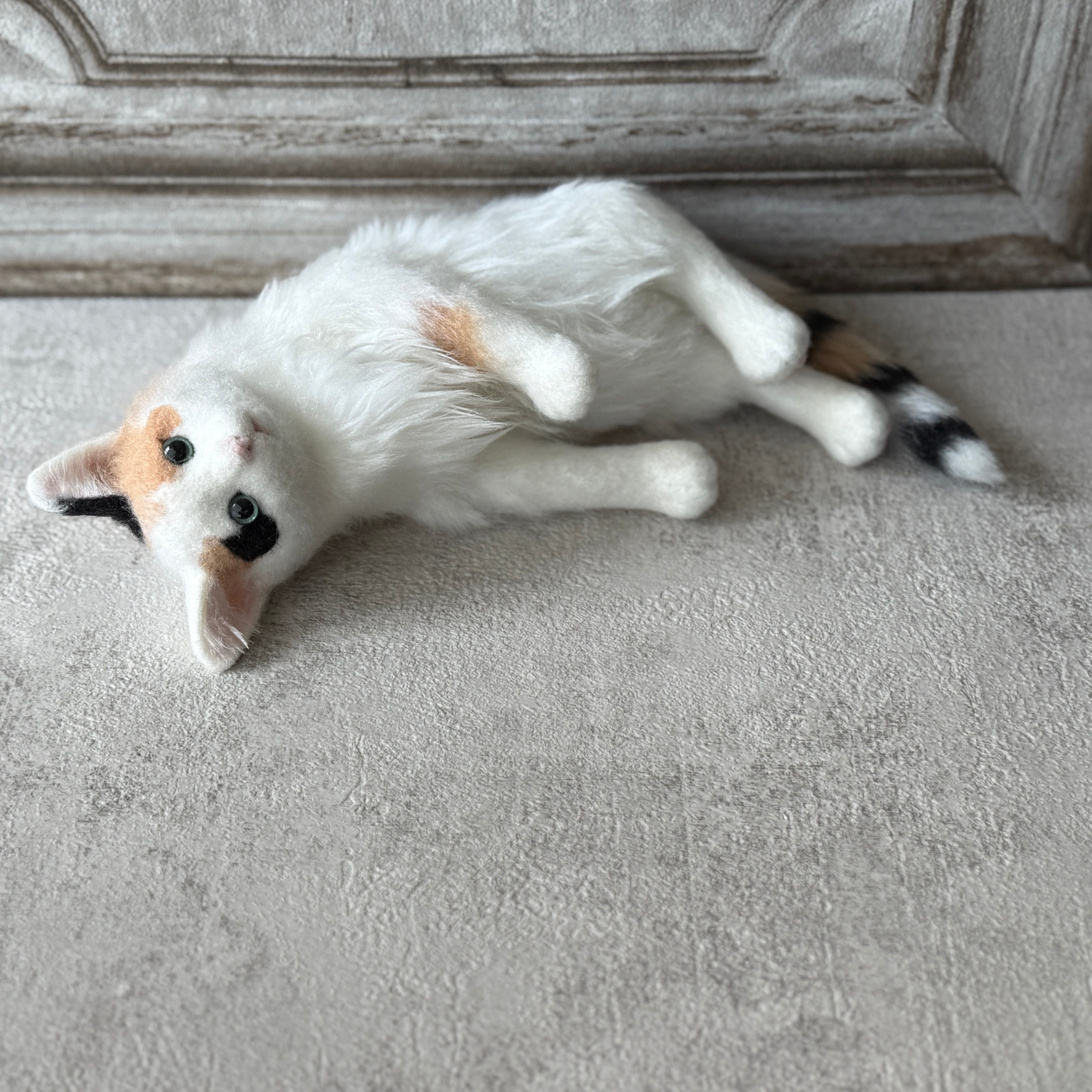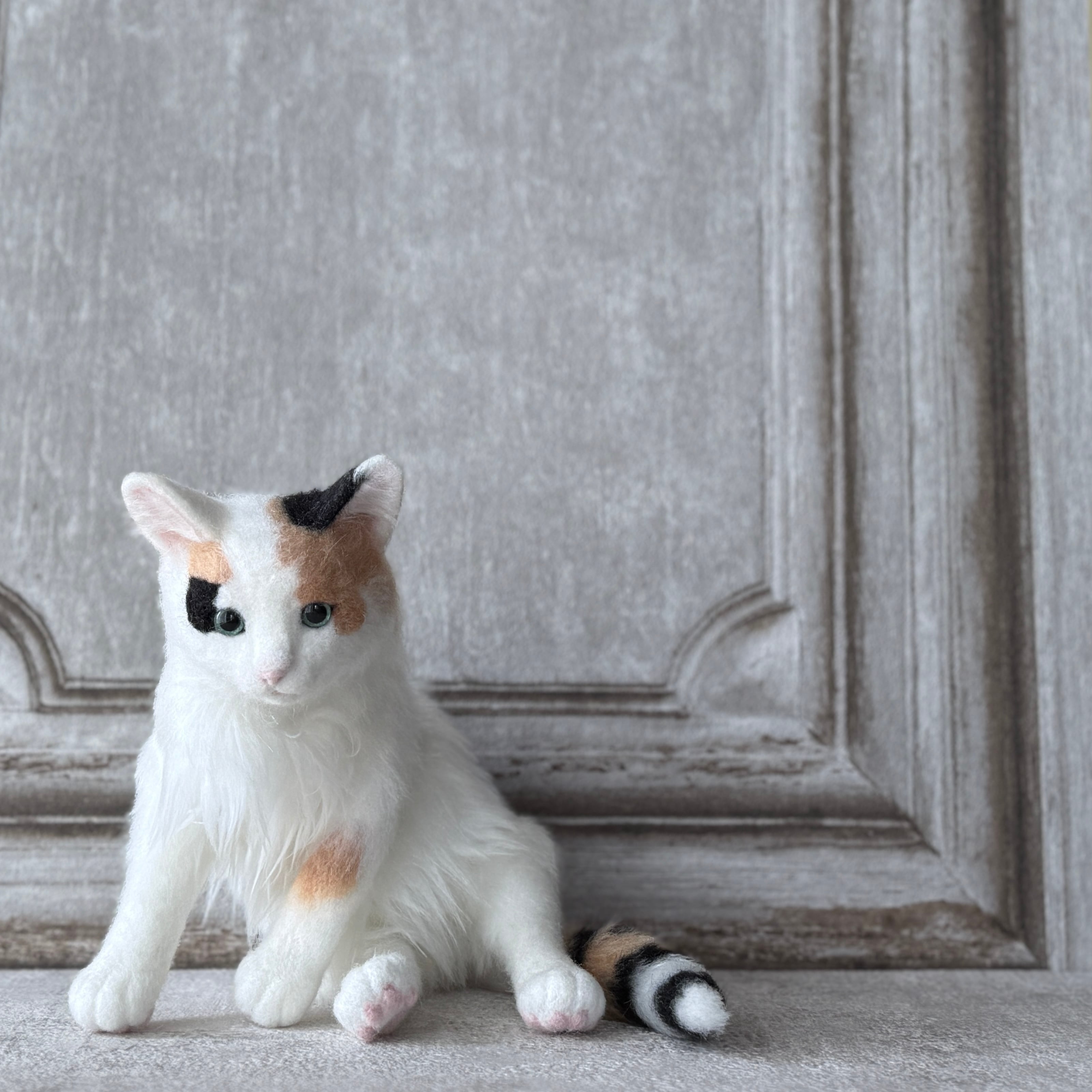 三毛ネコ(和猫)の一点物のアートクラフトぬいぐるみ。