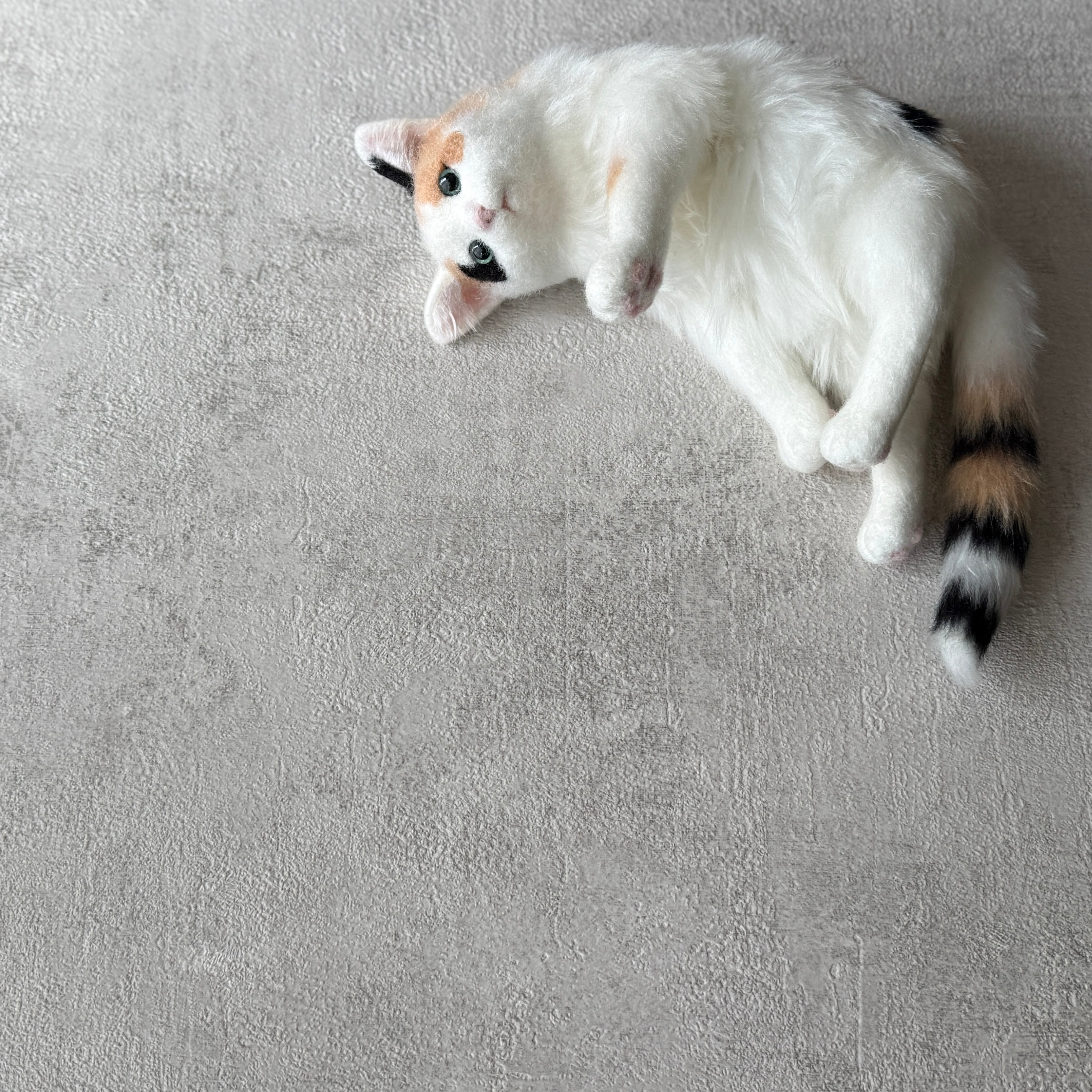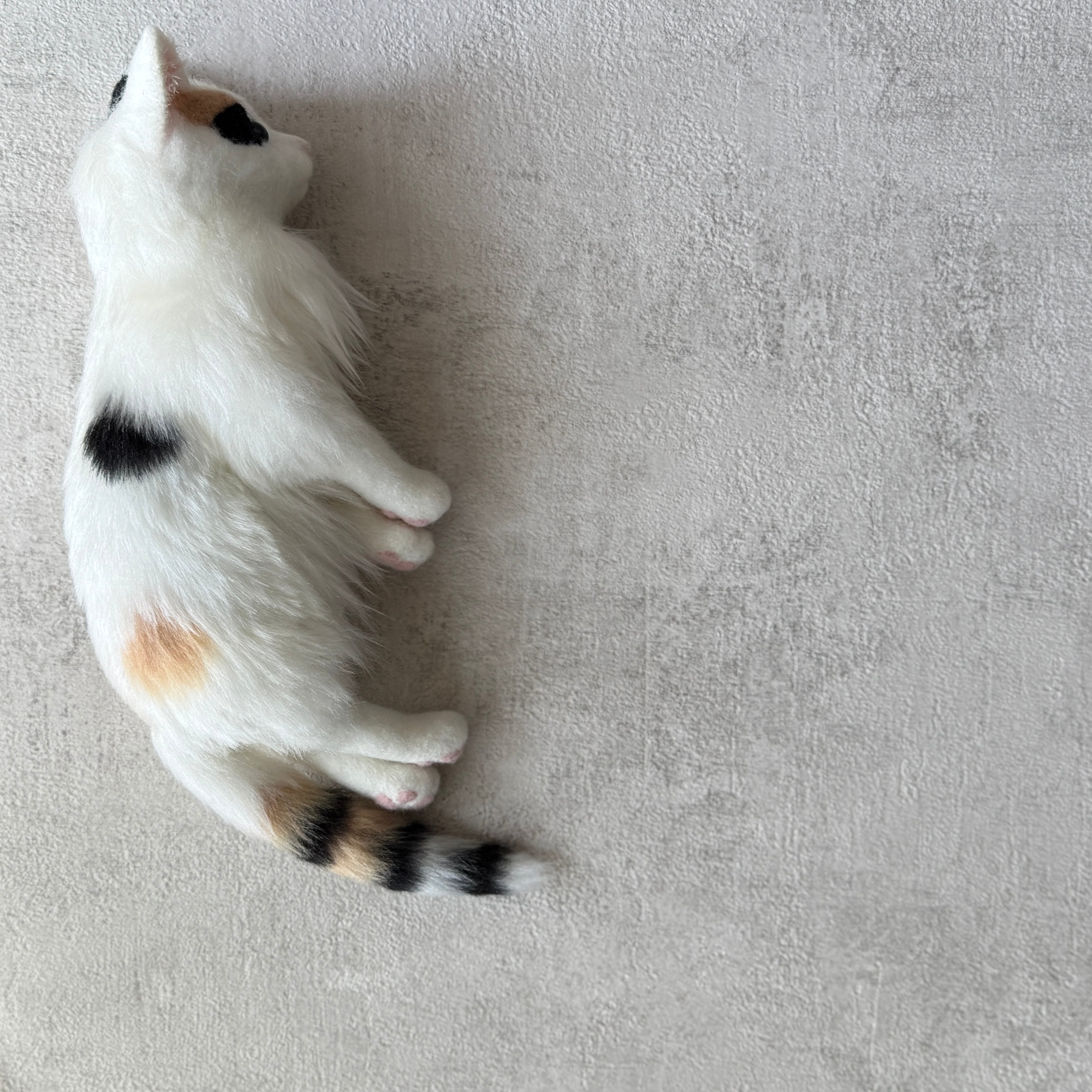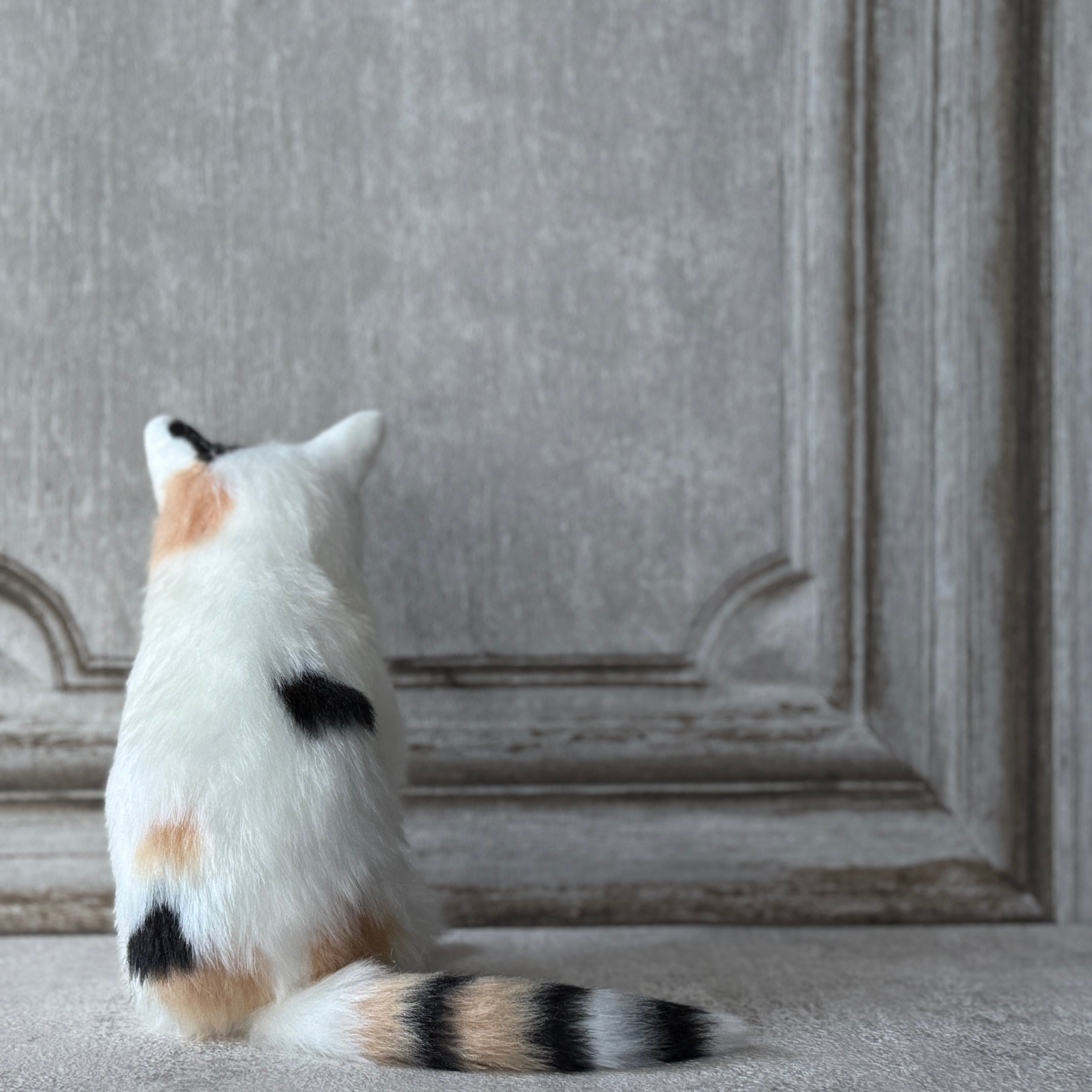 複数種のファーを縫い合わせ、毛並みの自然な立体感と三毛猫らしい模様を再現。