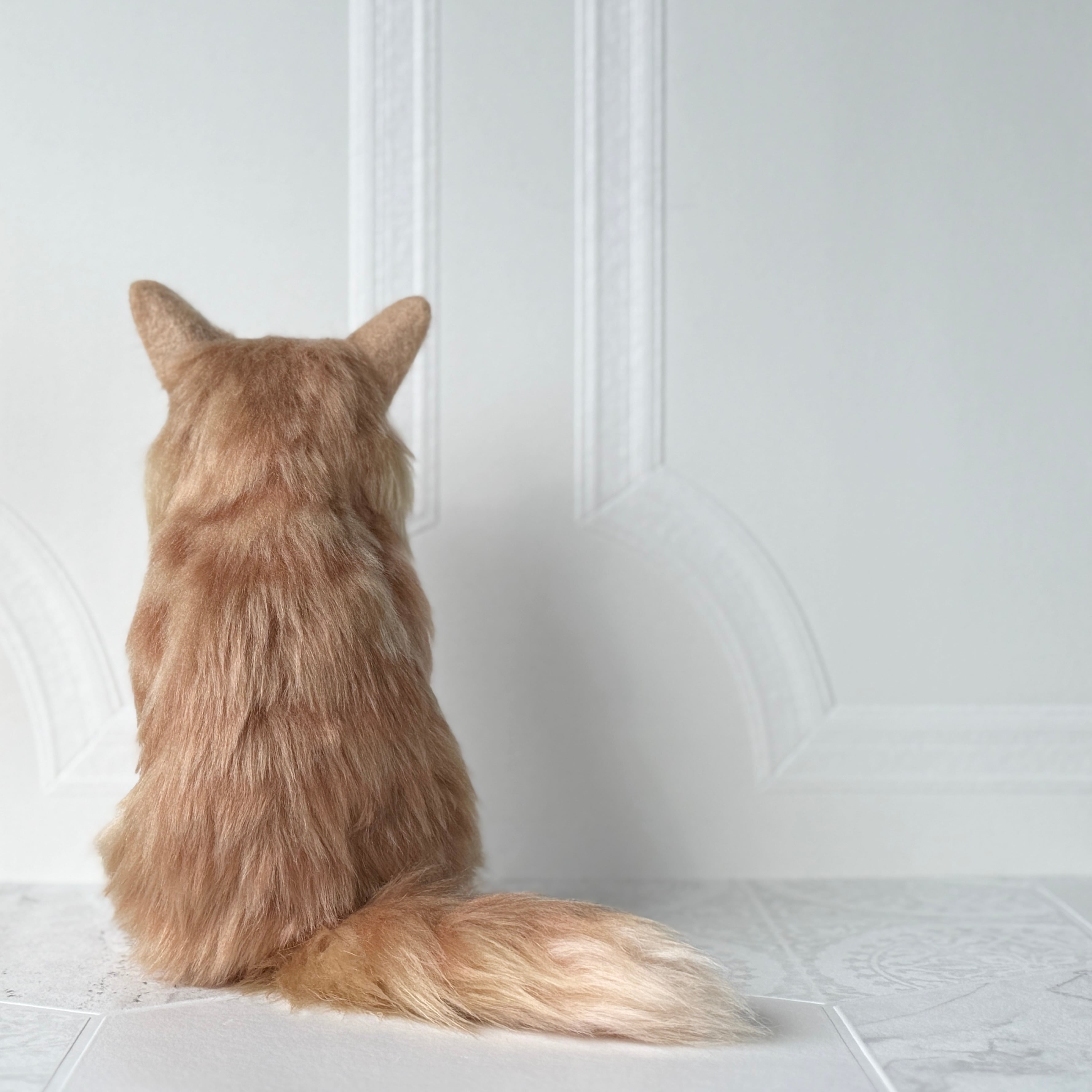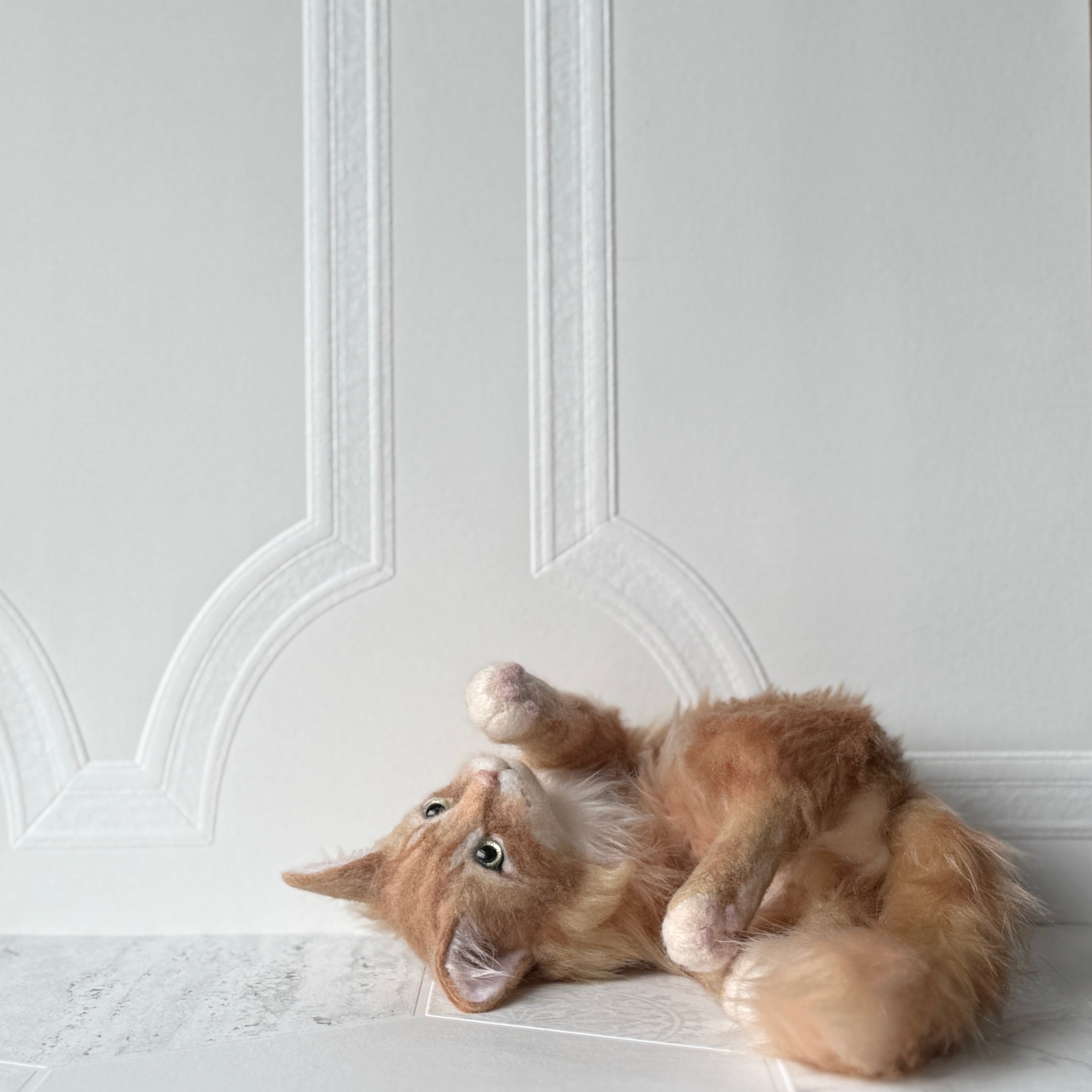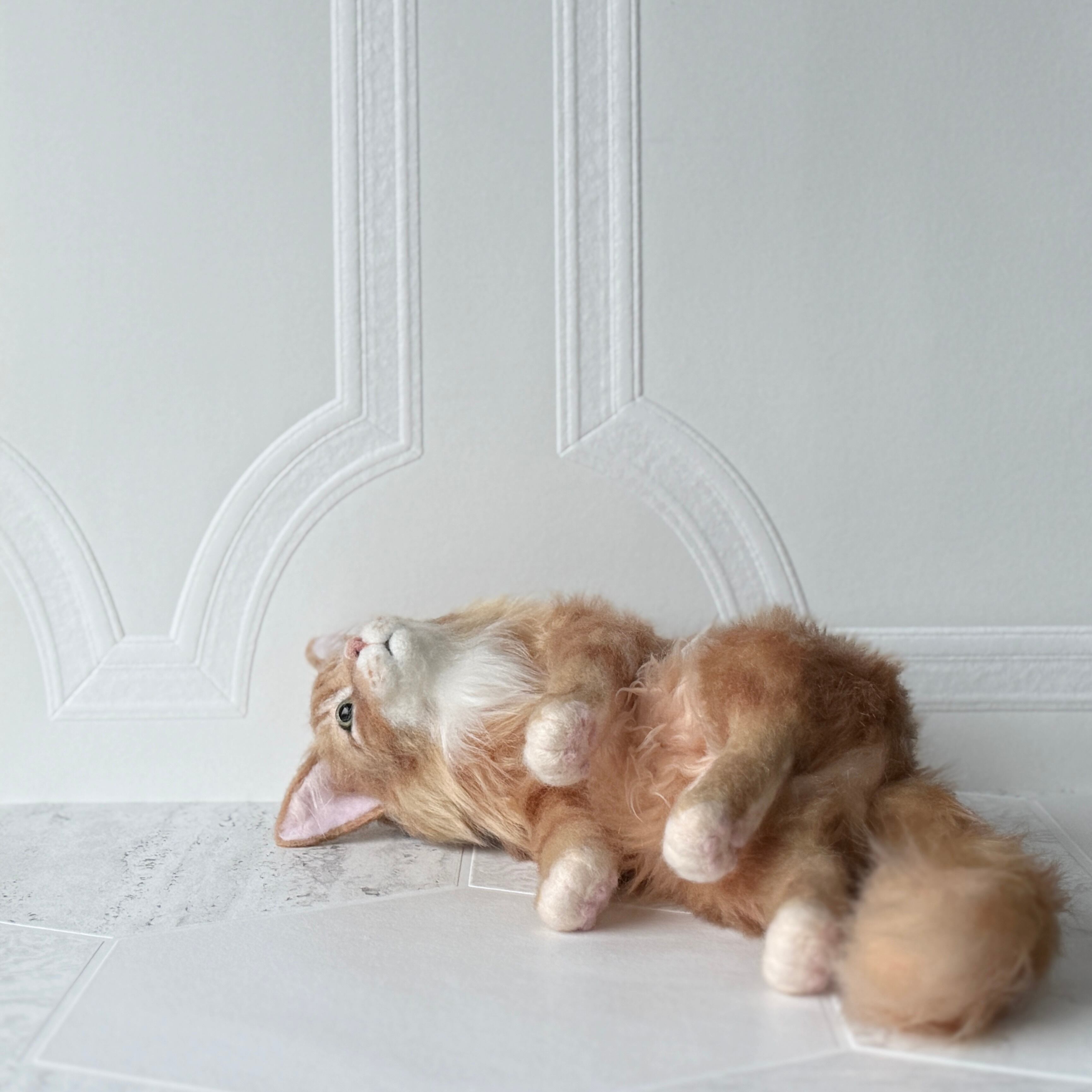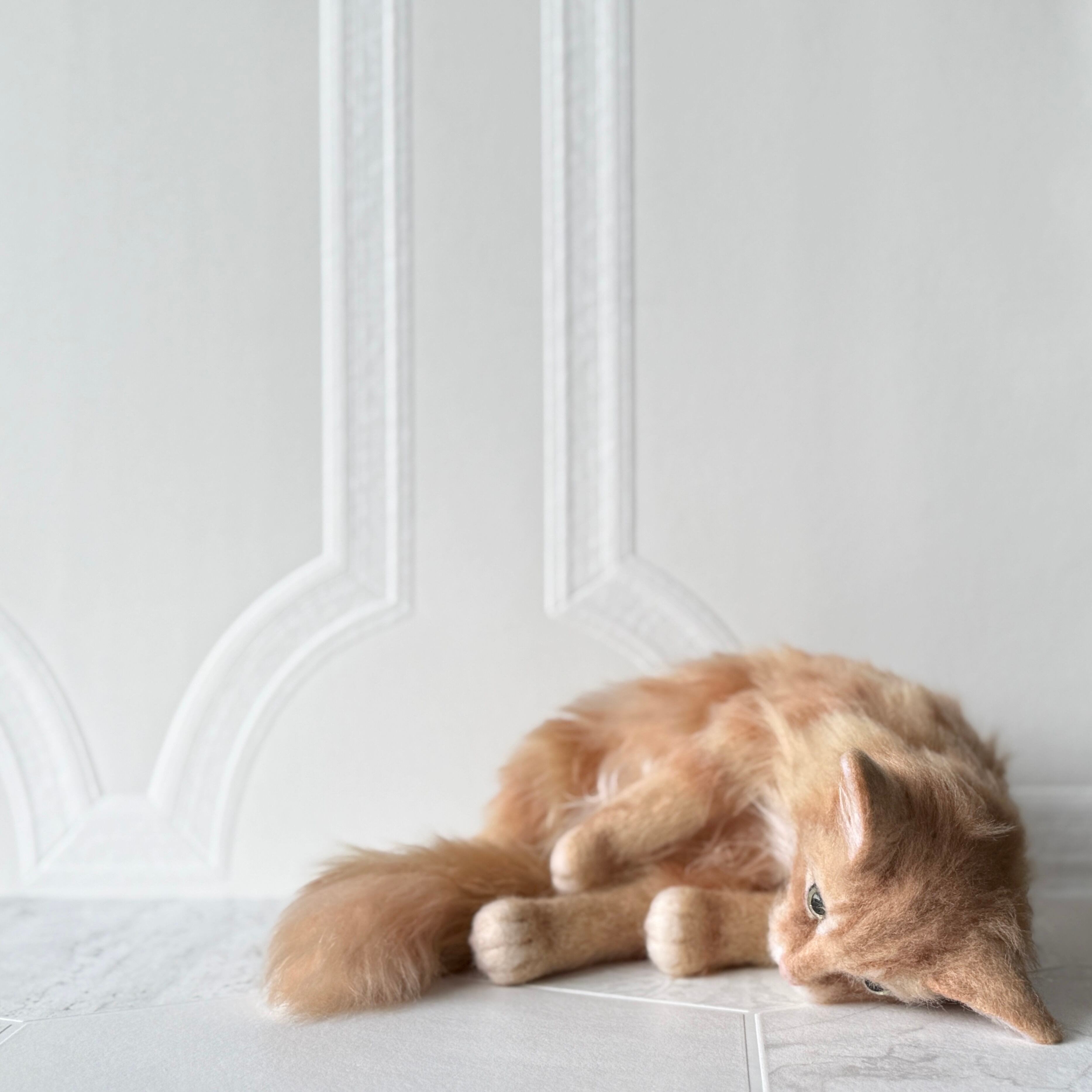 An art-craft plush inspired by a ginger tabby cat.