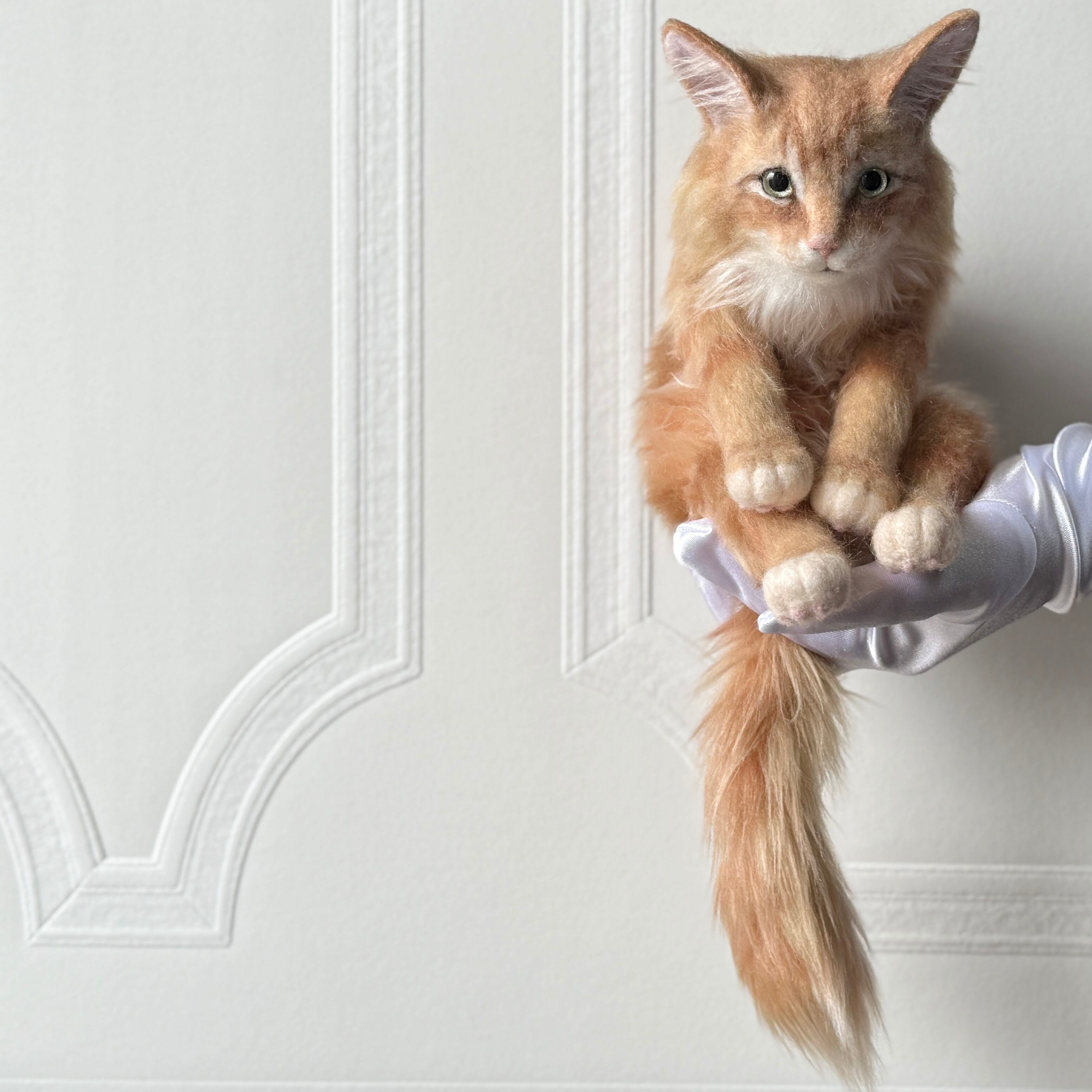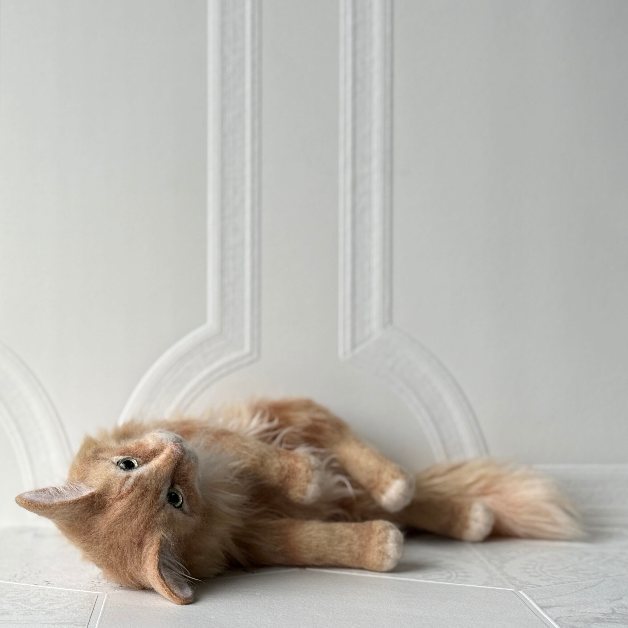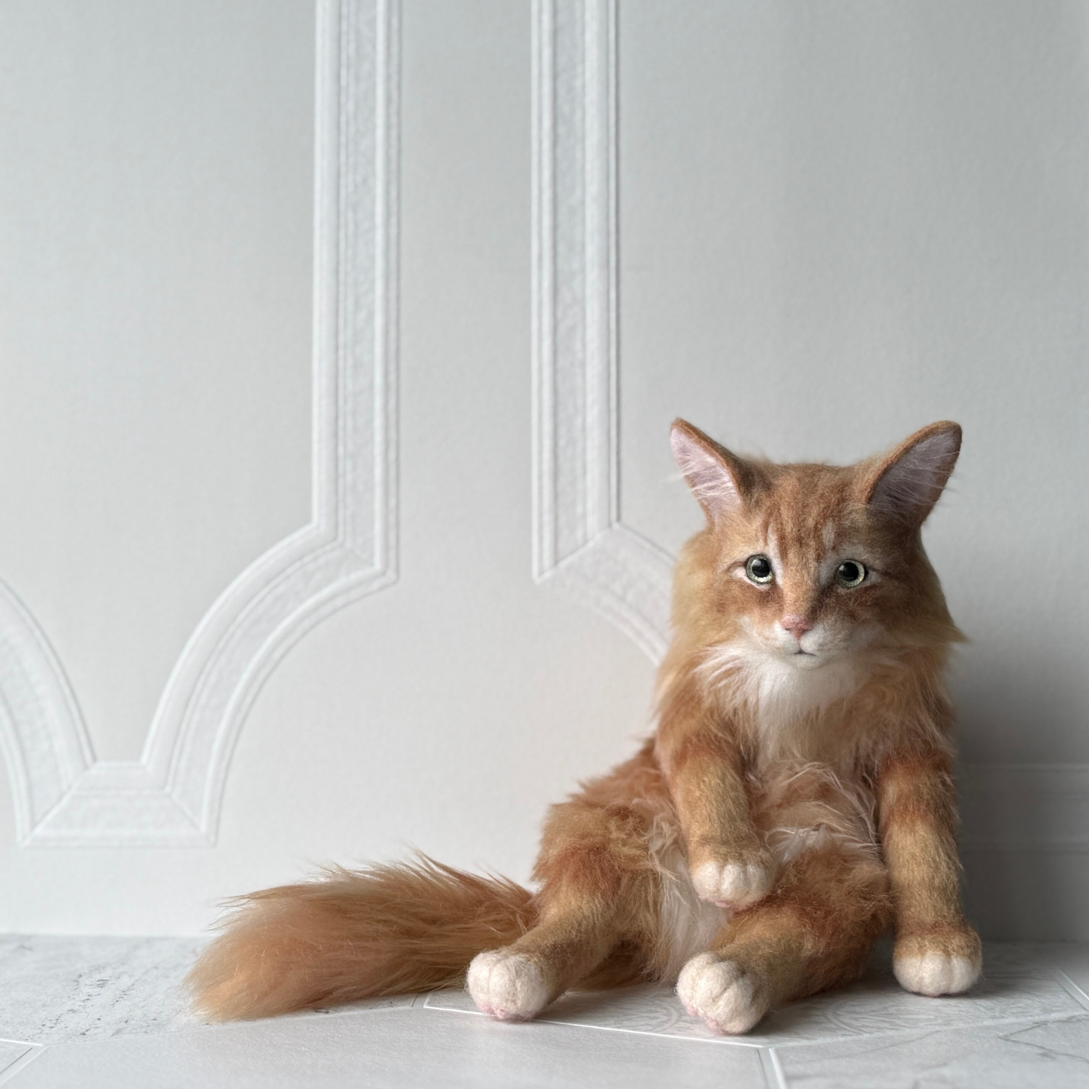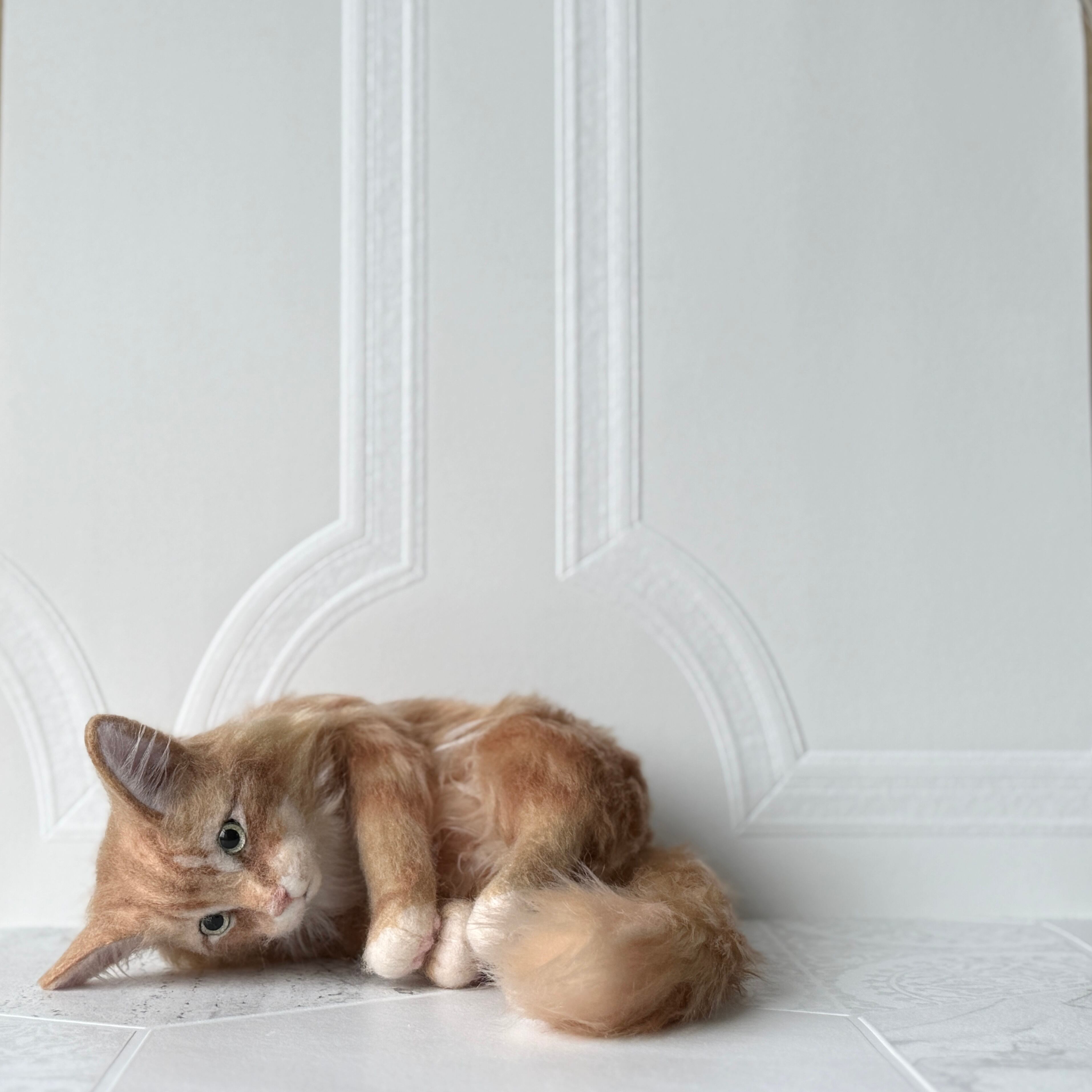 An art-craft plush inspired by a ginger tabby cat.