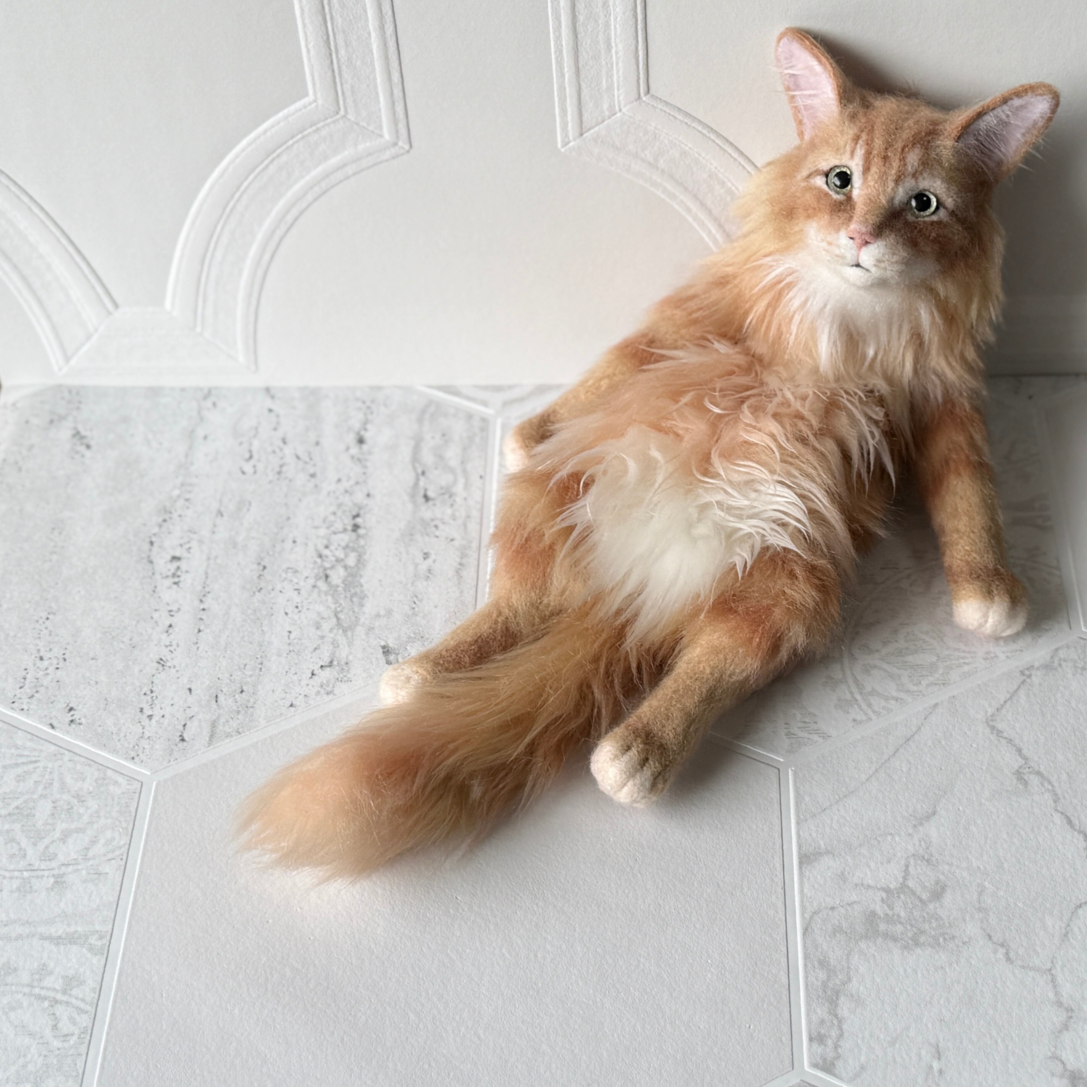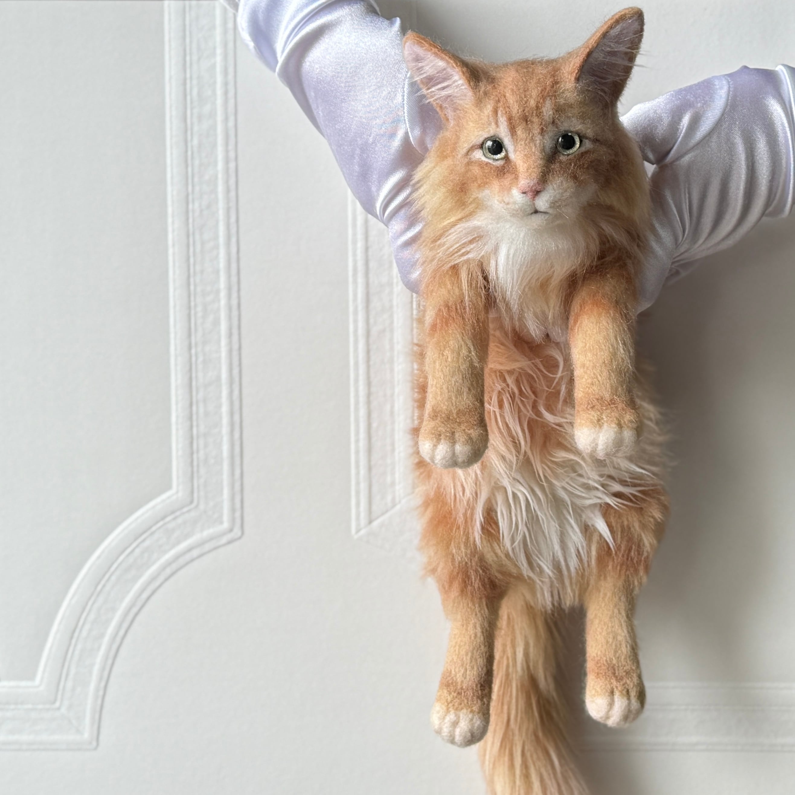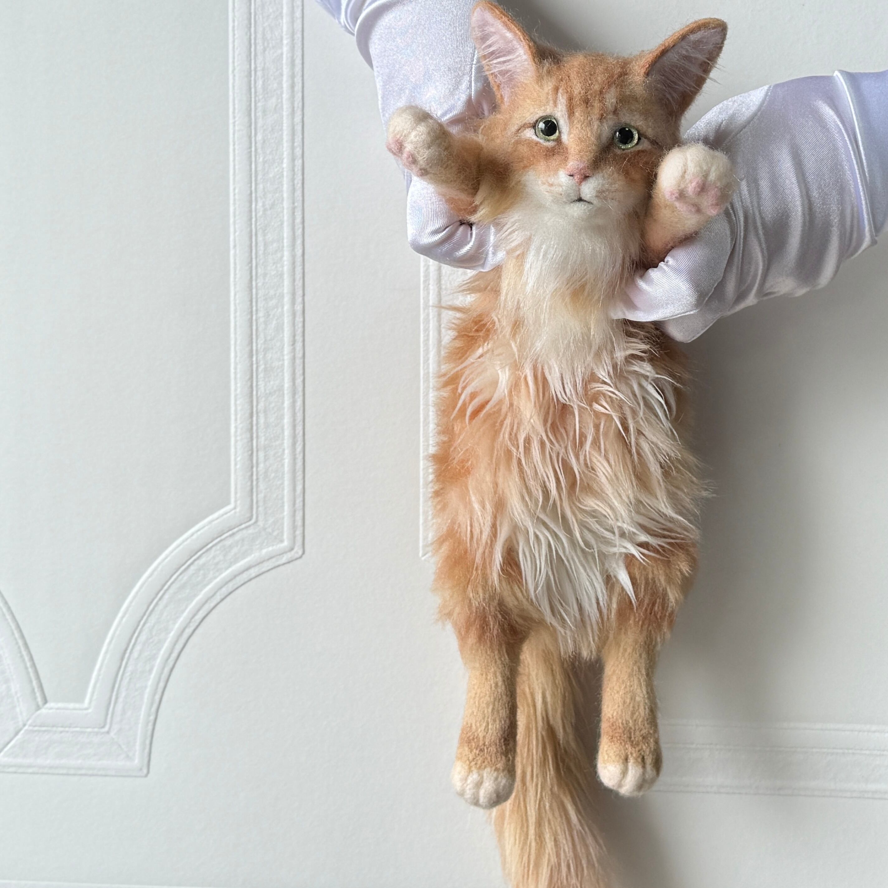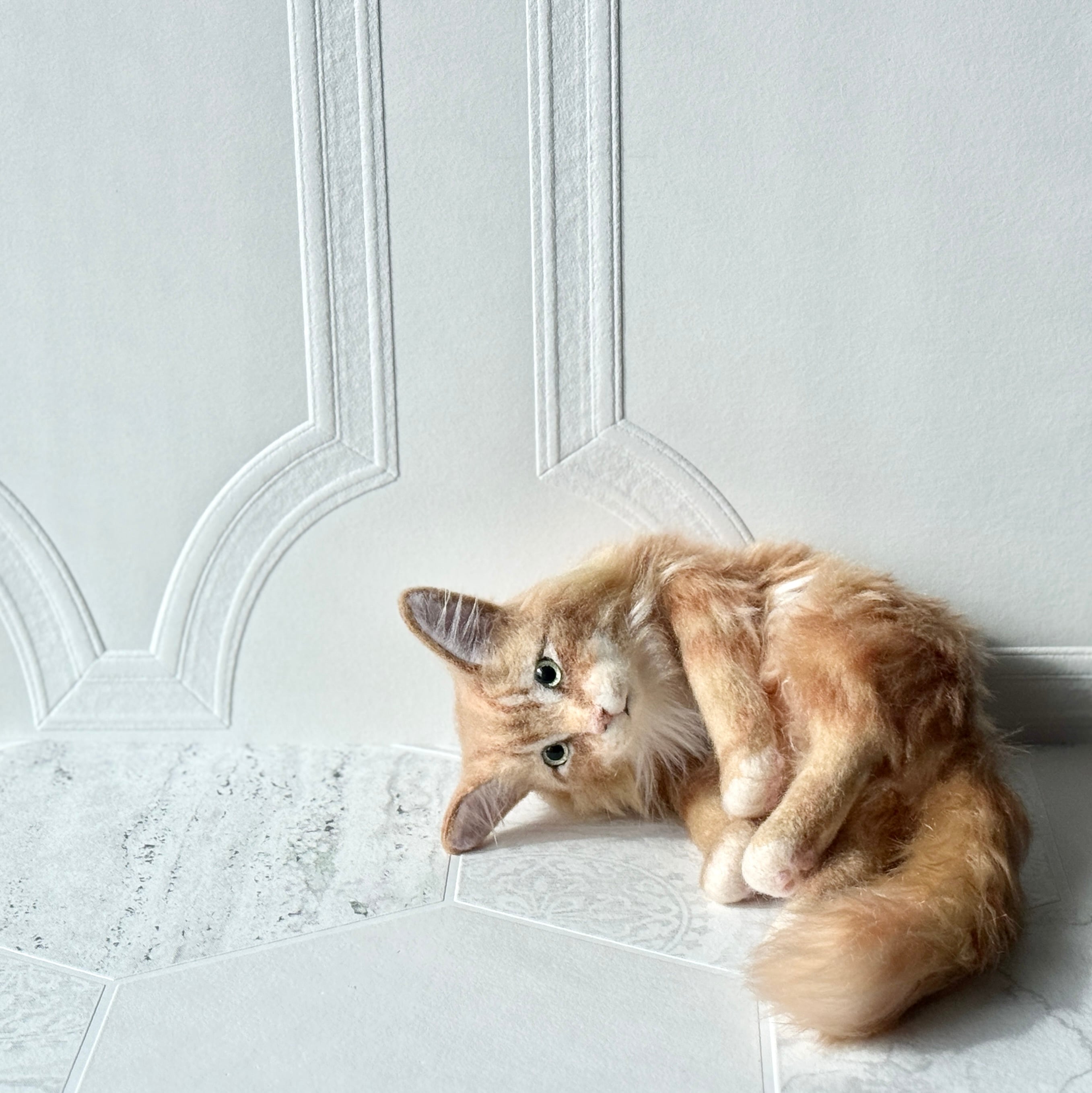 An art-craft plush inspired by a ginger tabby cat.