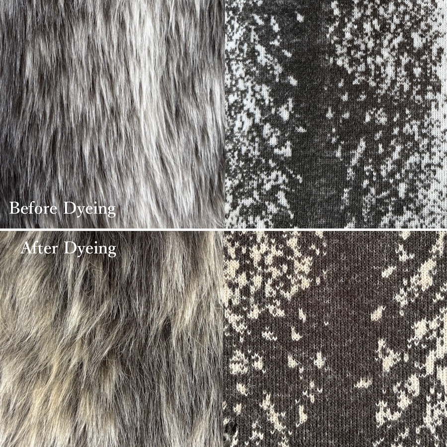 ※一部のファーは、濃淡柄のファーを手染めし、濃・中・淡のトーンをそれぞれ切り出して使用しています。