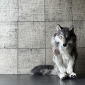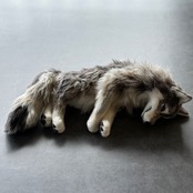 狼らしいフォルムを大胆に強調しながらも、グレー系とベージュ系のファーが複雑に入り混じるリアルな色彩を再現。