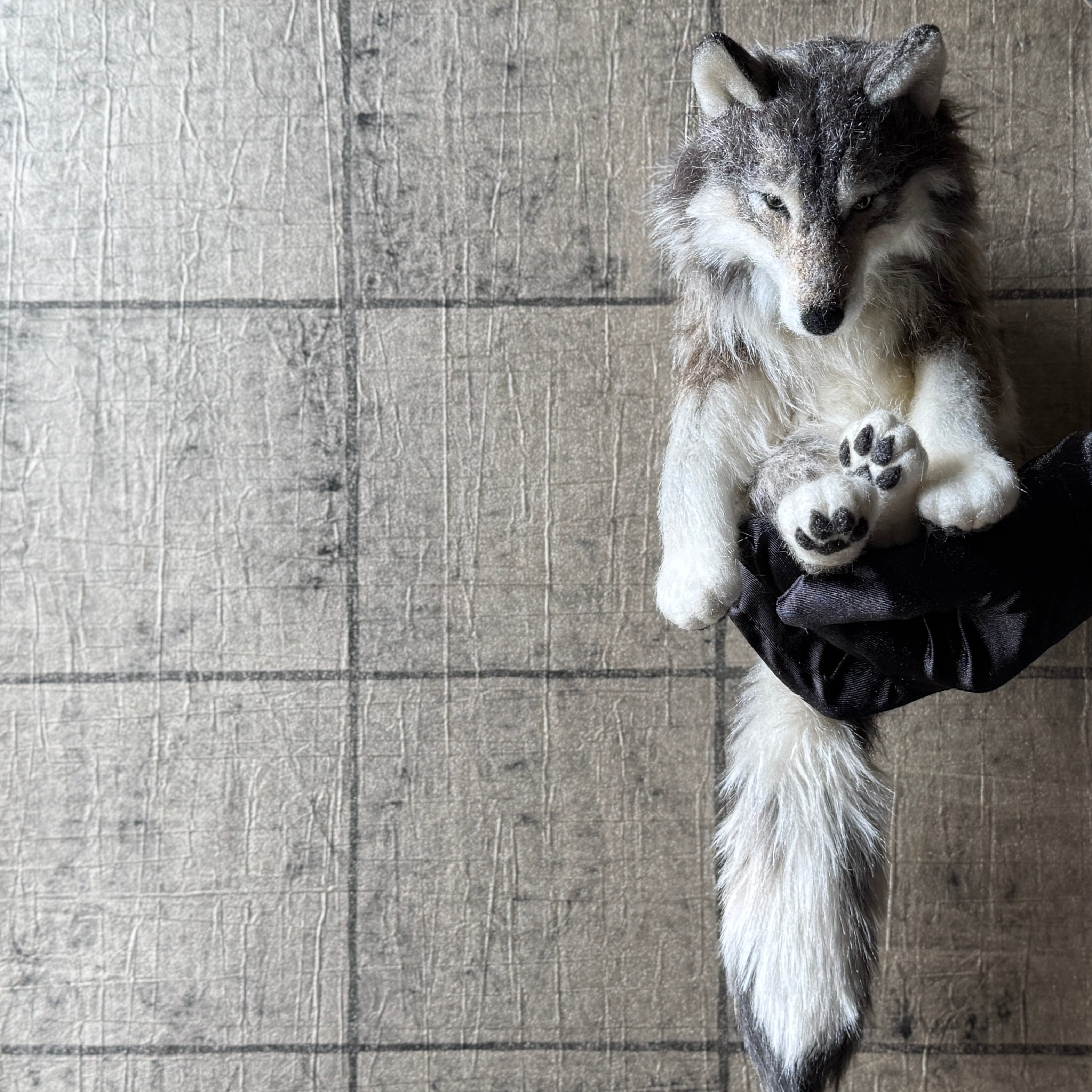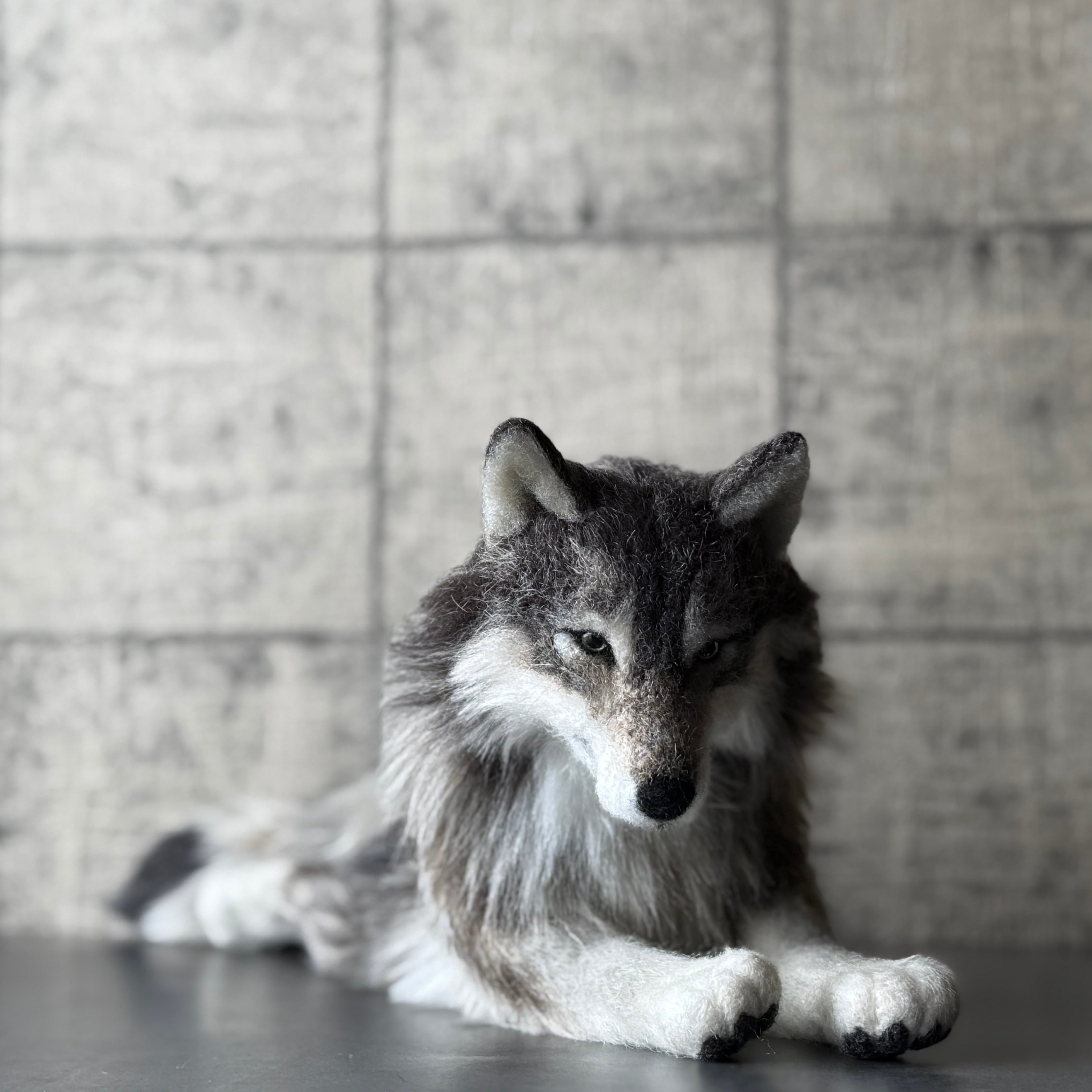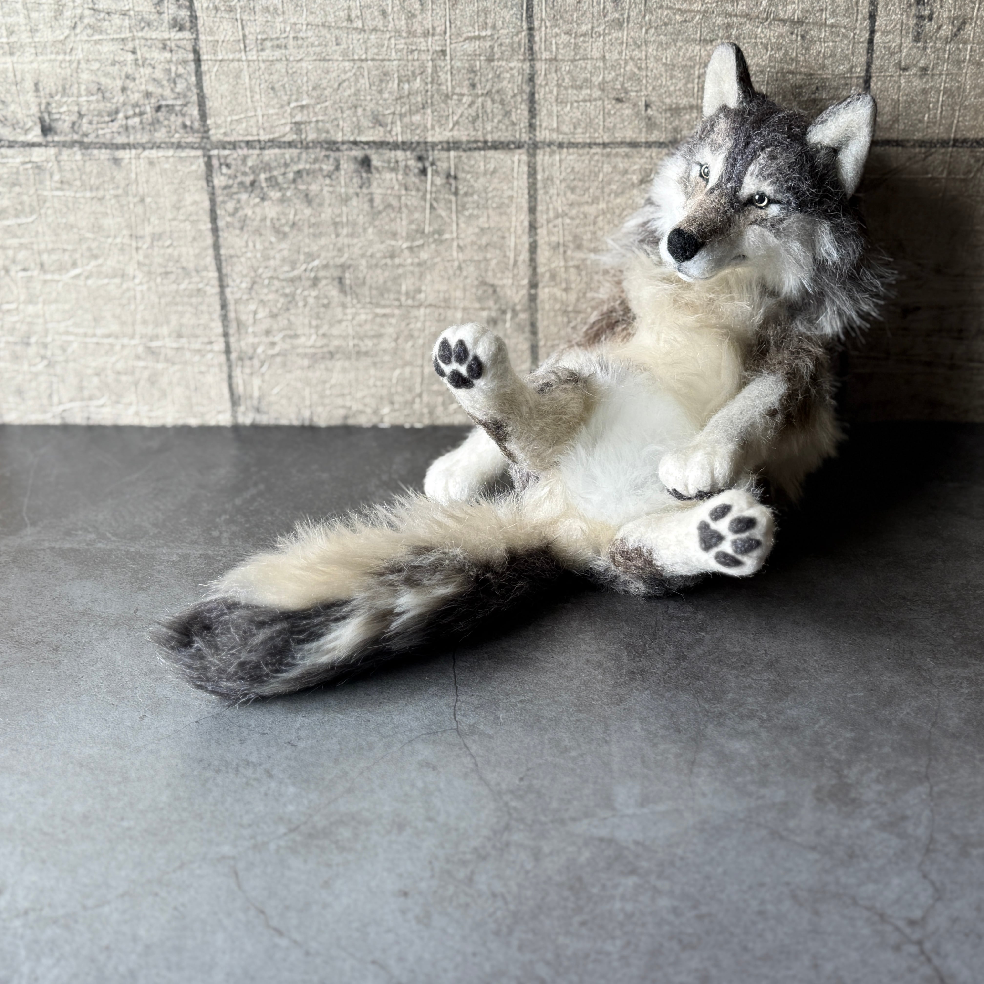 オオカミのアートクラフトぬいぐるみ。