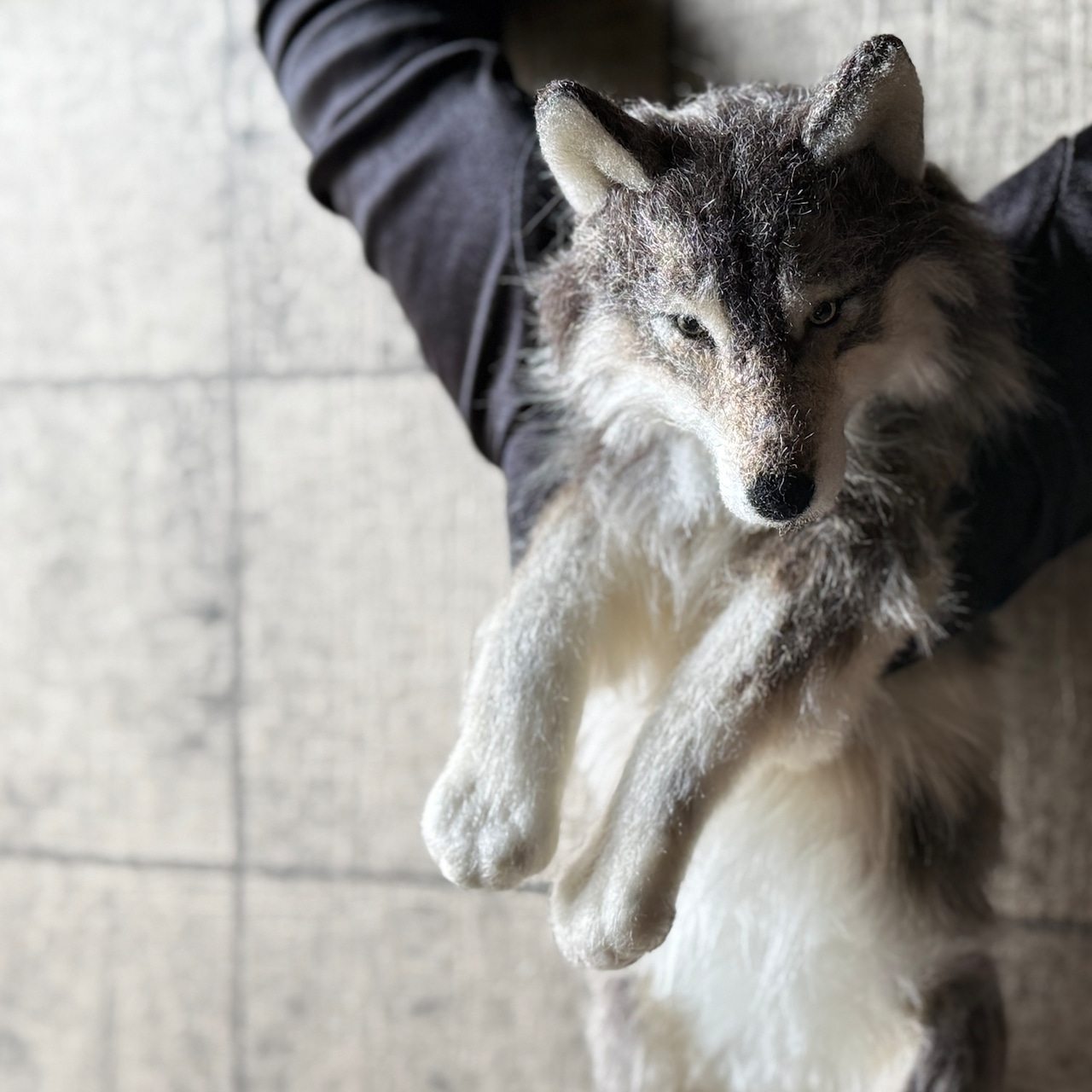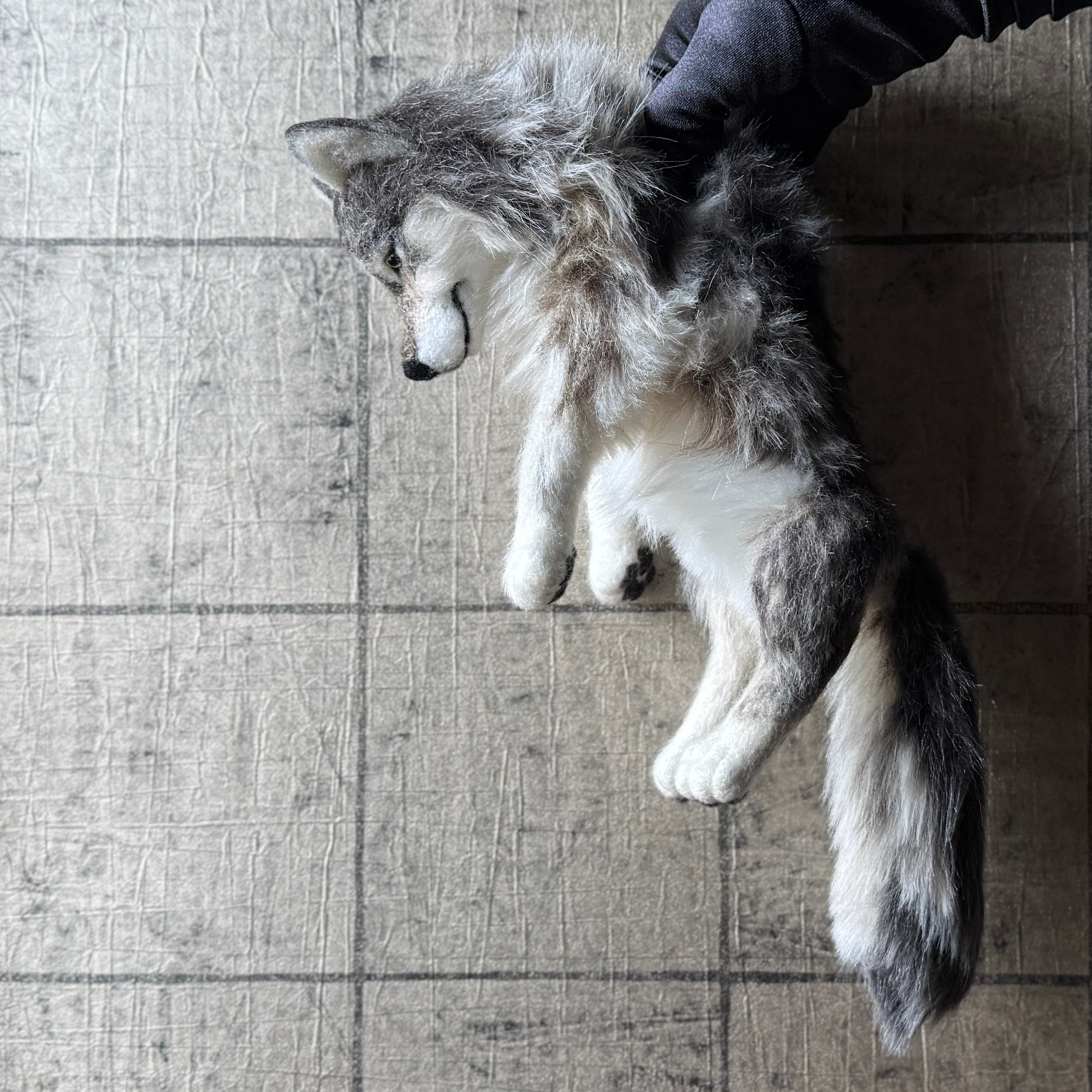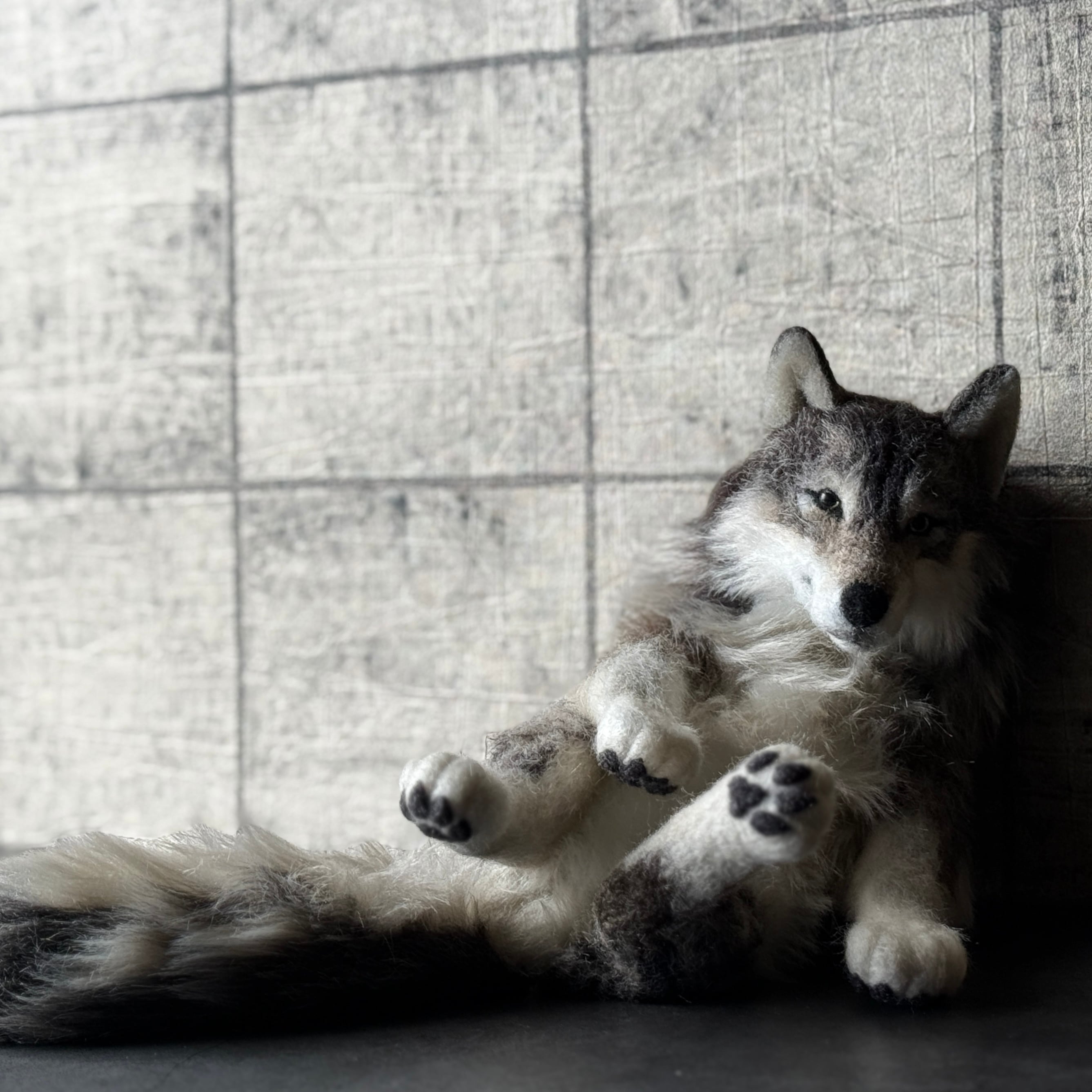オオカミのアートクラフトぬいぐるみ。