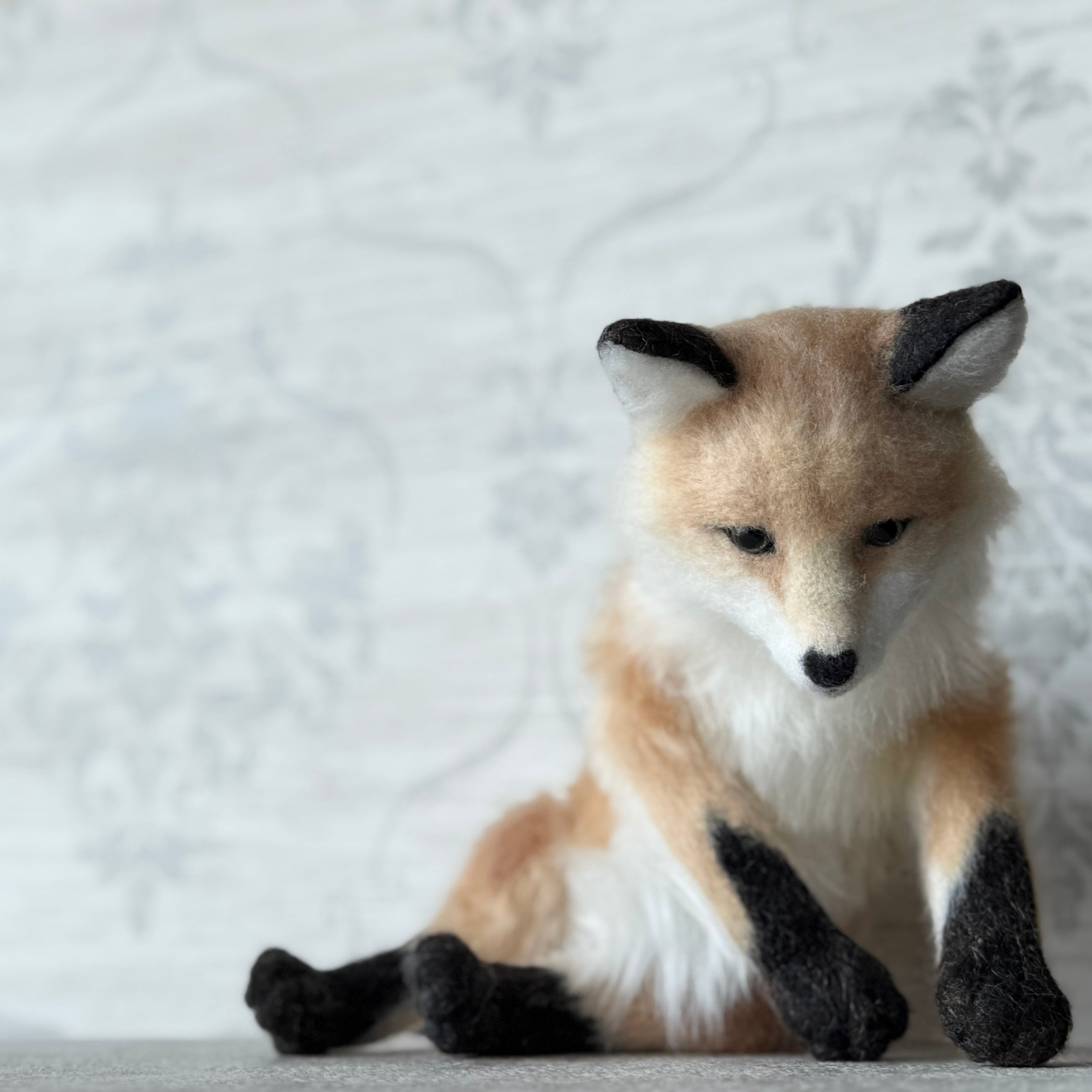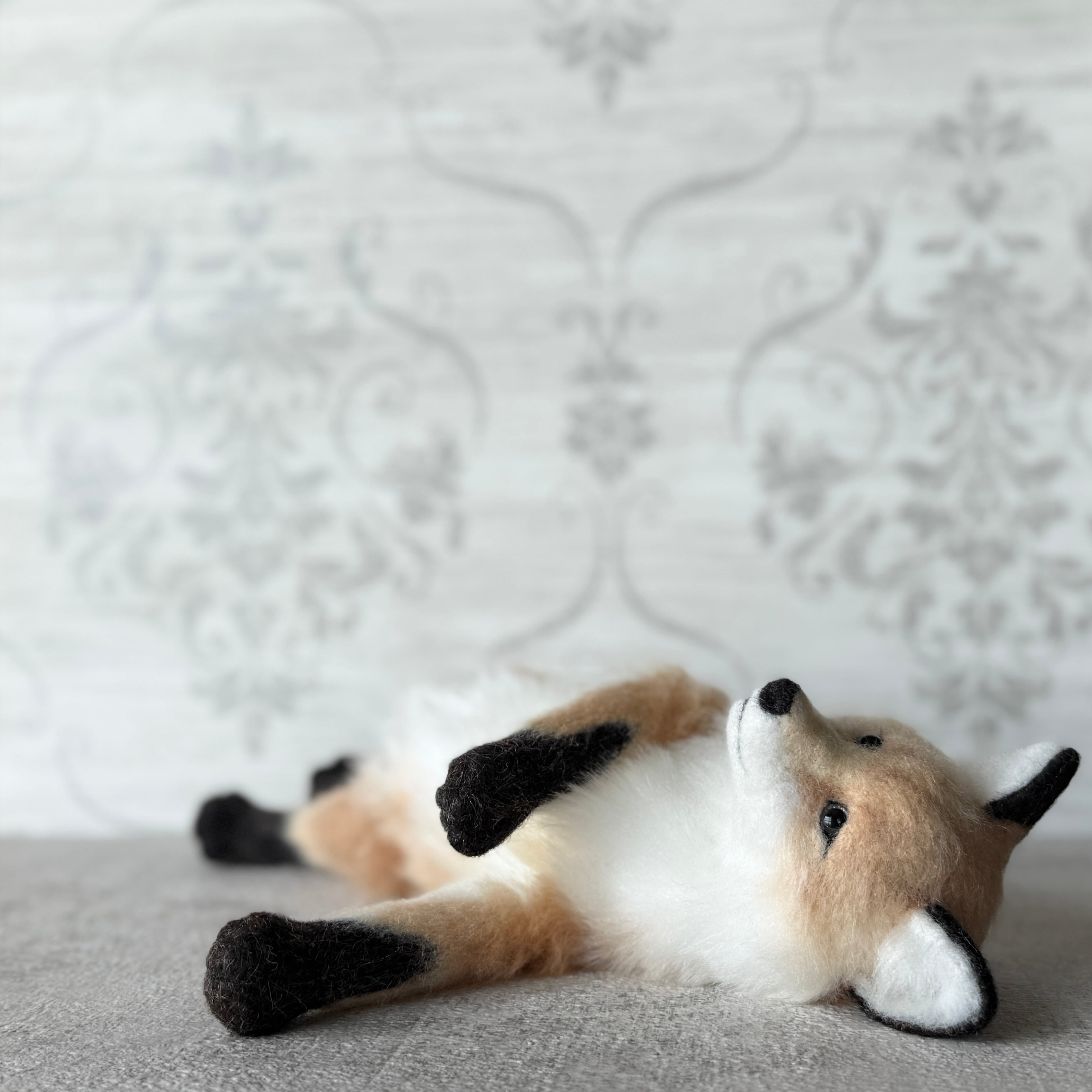 A one-of-a-kind art-craft plush inspired by a young red fox.