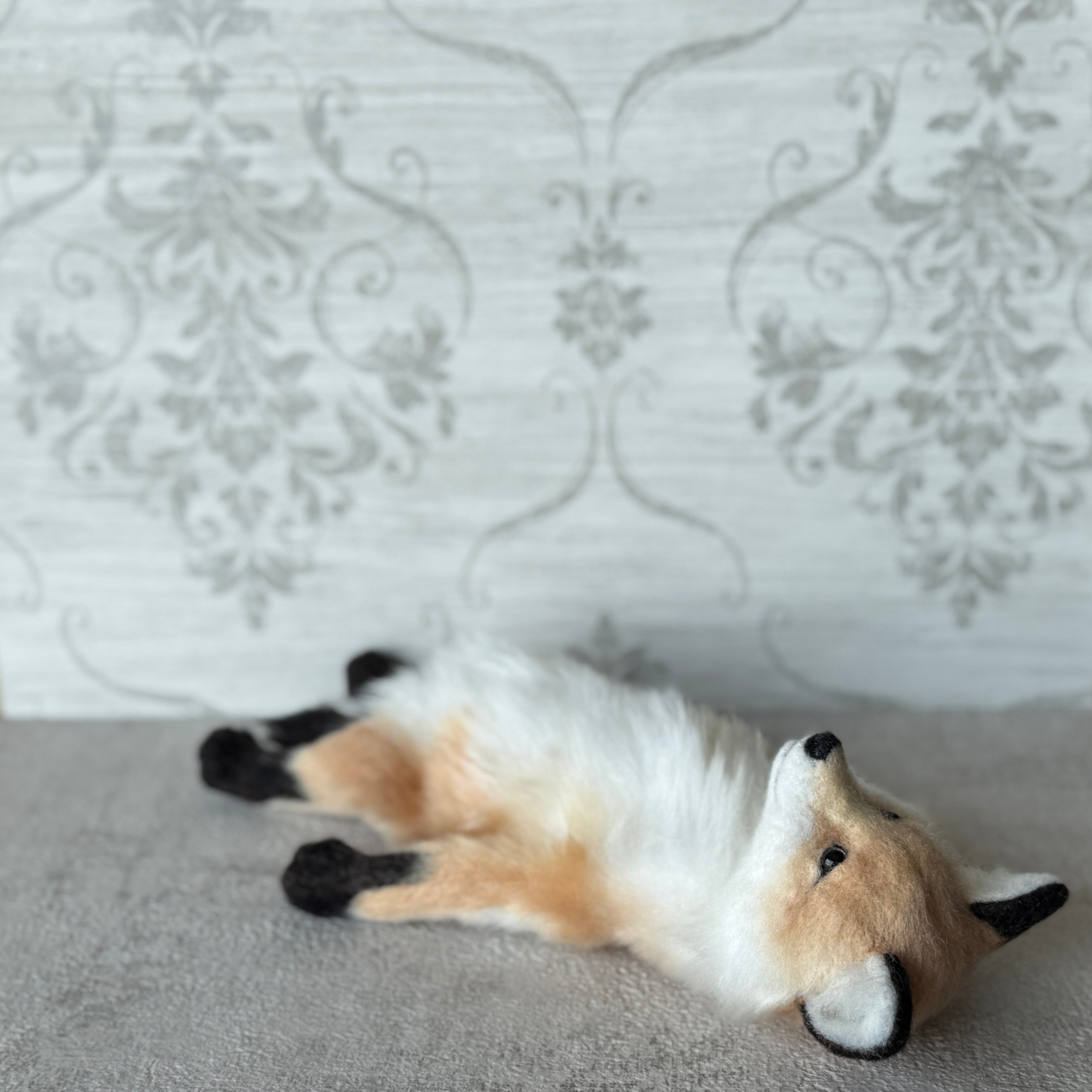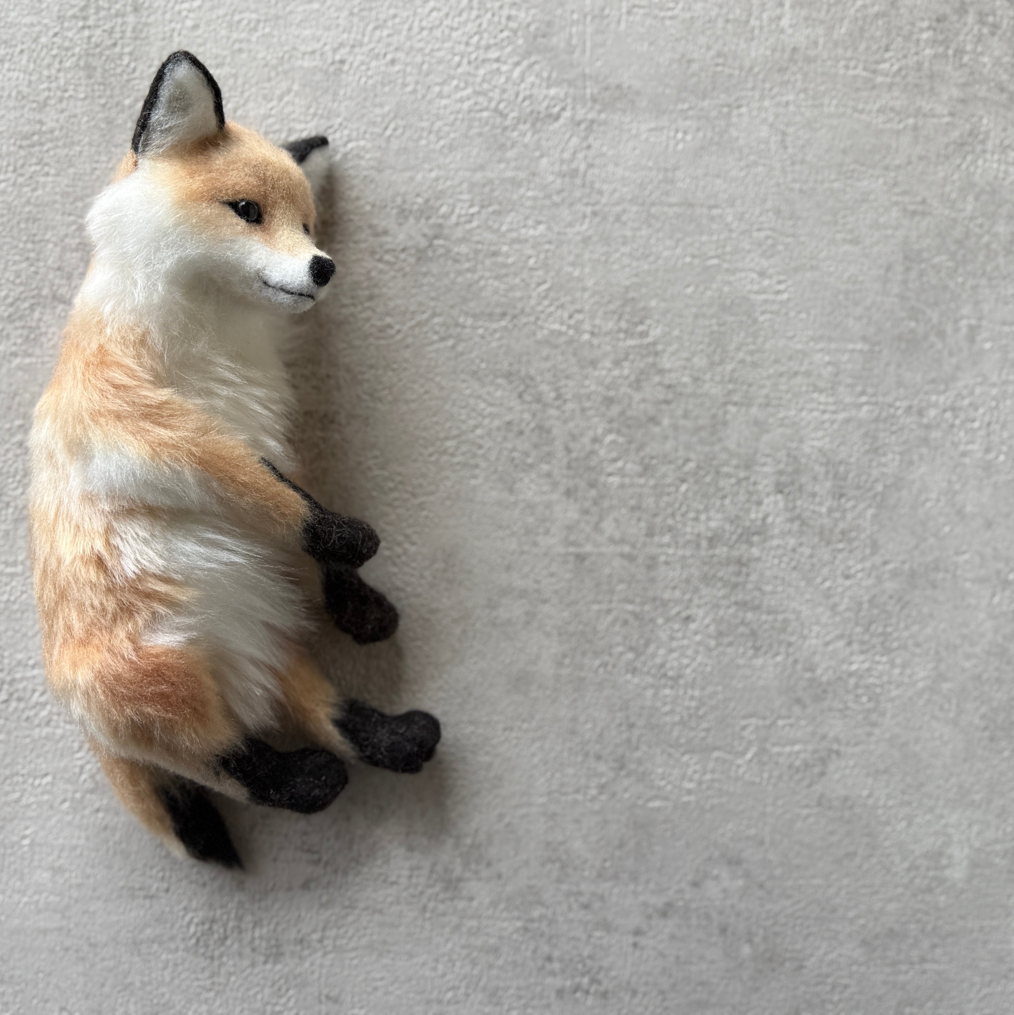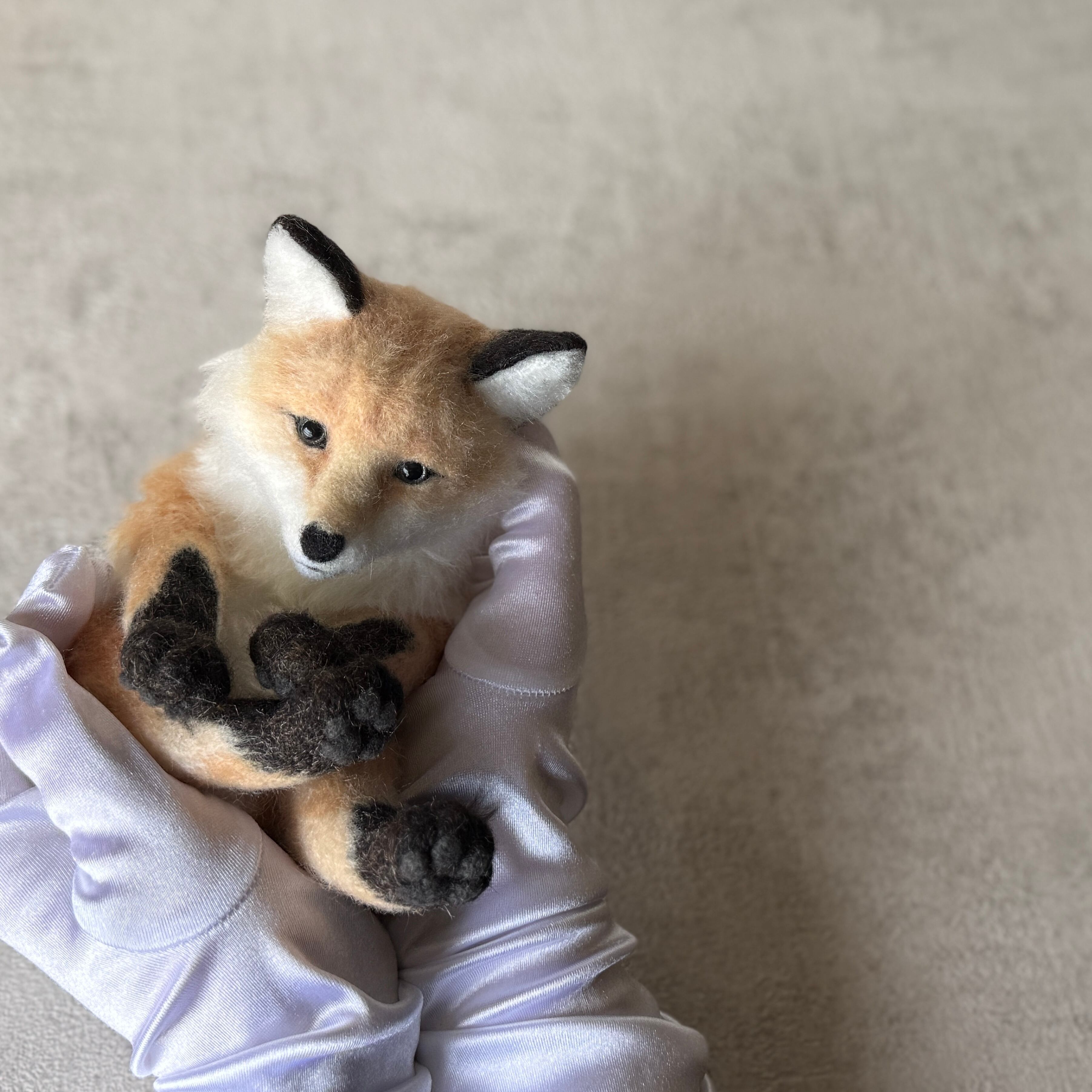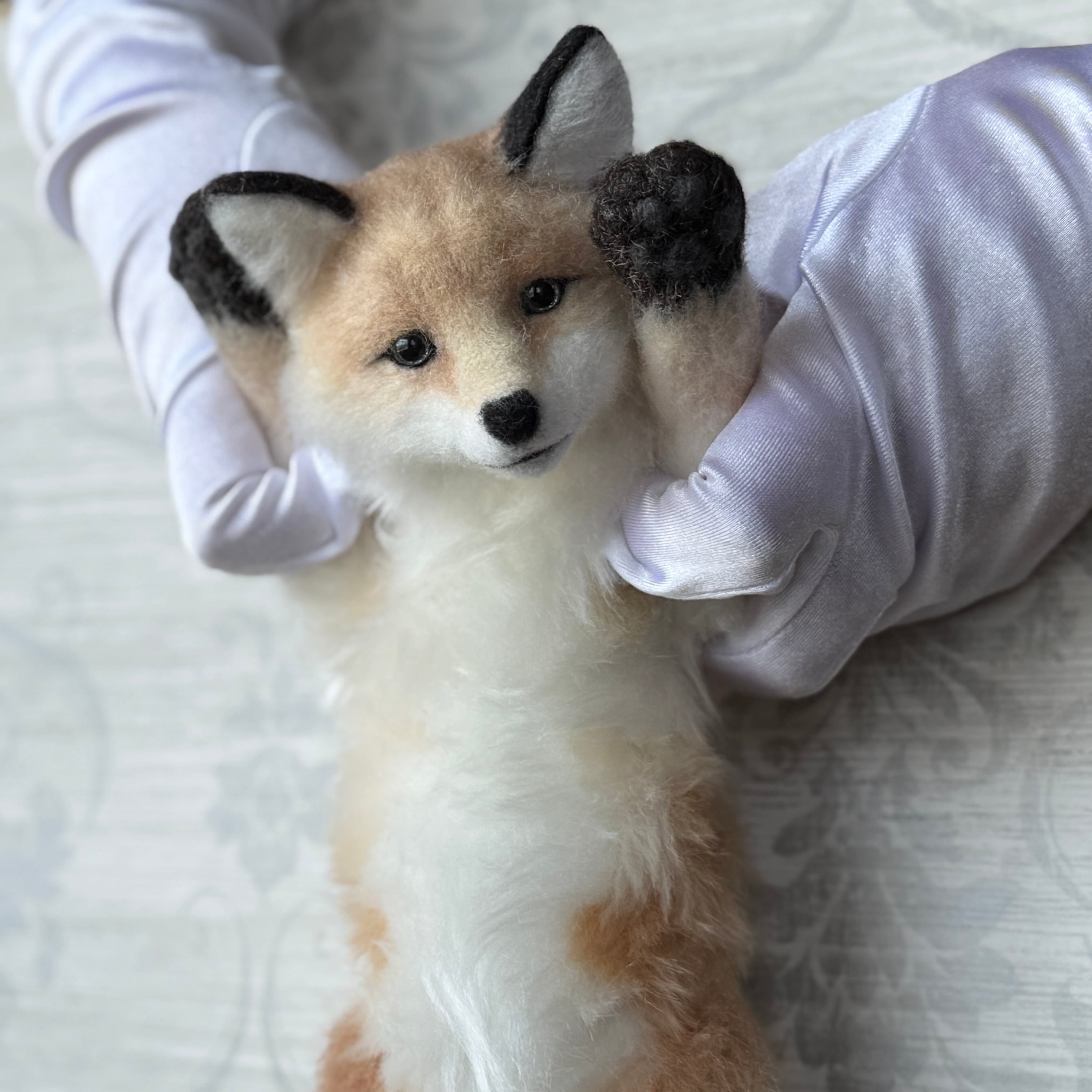 キタキツネの子どもをイメージした一点物のアートクラフトぬいぐるみ。