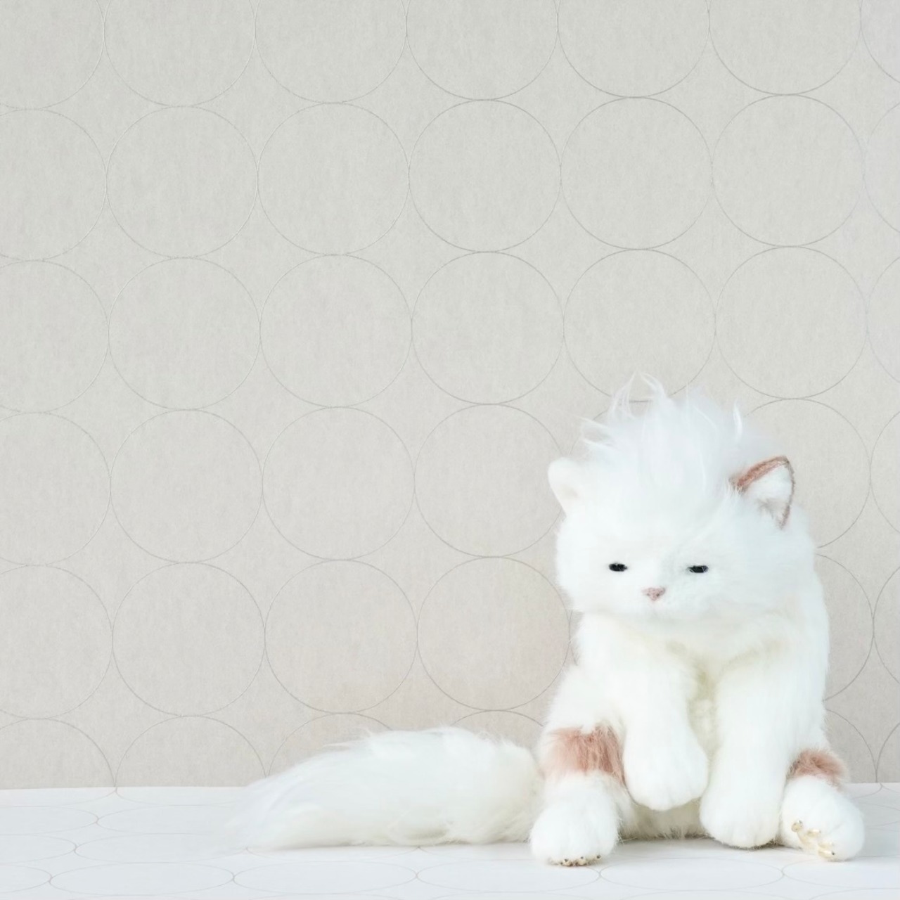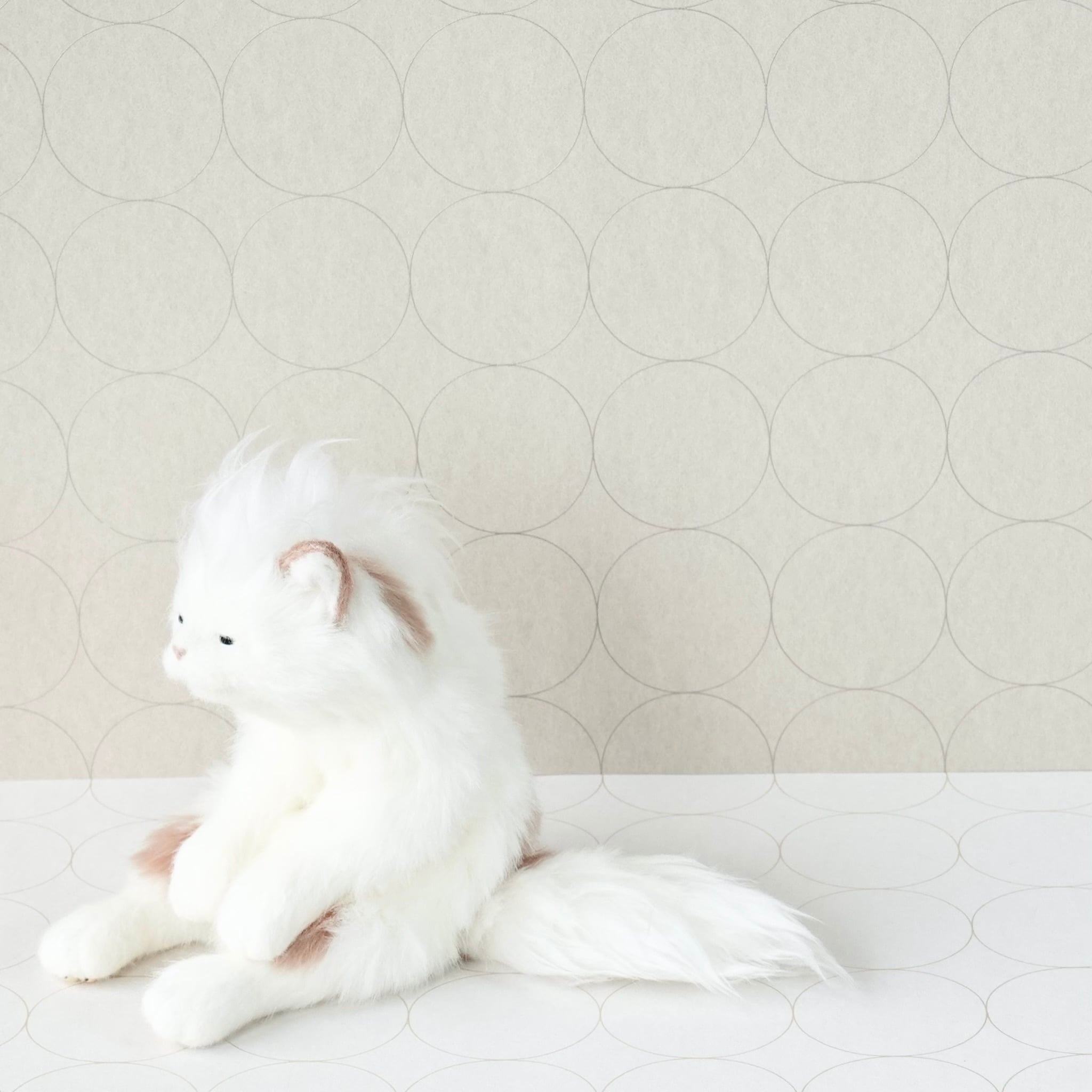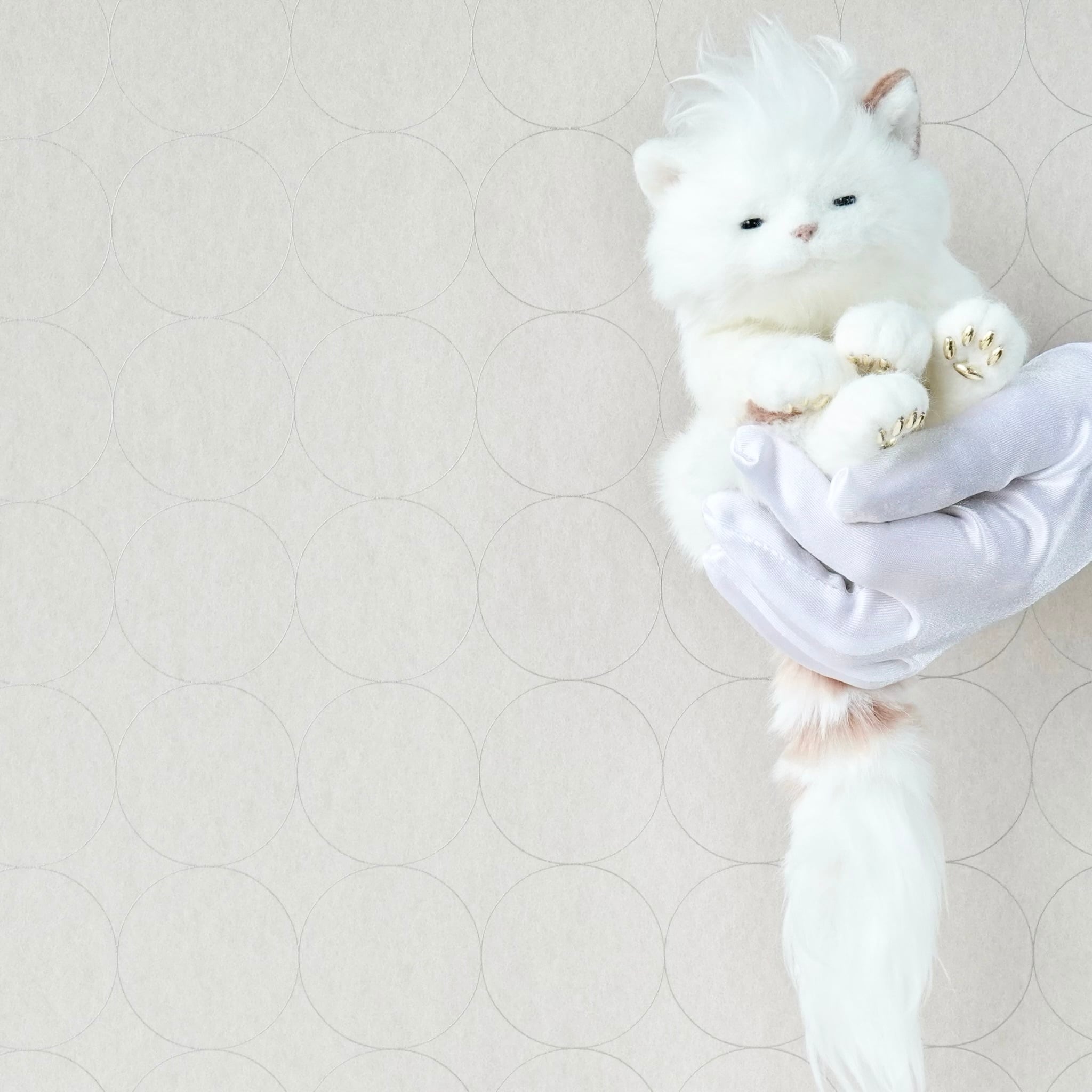ネコ 202308Bセピアハートをベースに「寝起き化」したネコちゃん。とろんとした目で頭頂部としっぽをちちぢれ毛にし、寝起きシリーズと同様の仕様に。肉球の色はゴールドです。中に簡易的なホネが入っており、クッタリとしています。