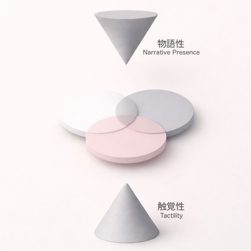 そこに「物語性」と「触覚性」という軸が交わる。